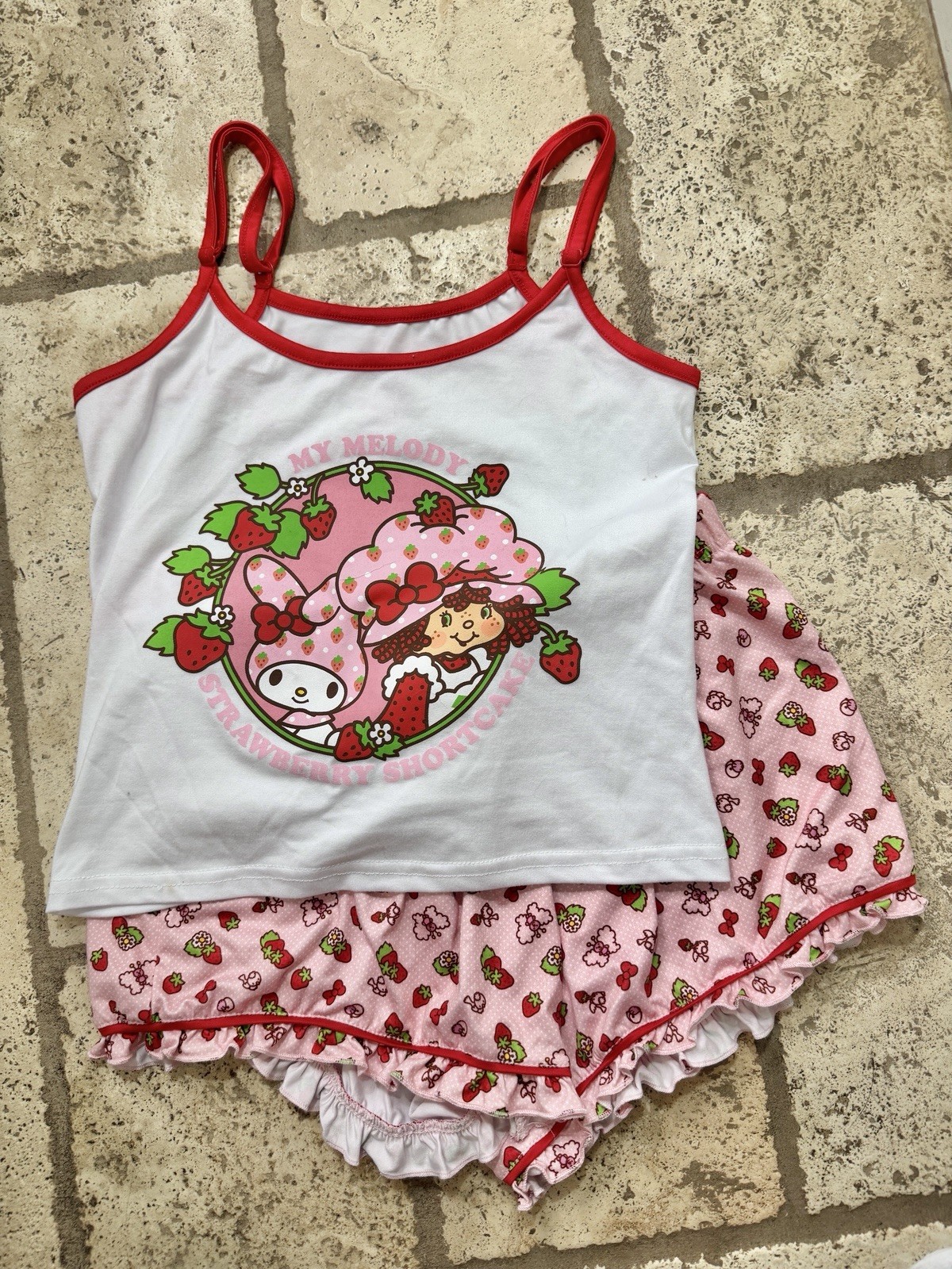 Strawberry Shortcake Womens Pajama Set Size S Tank Top Shorts Retro 80s NWOT