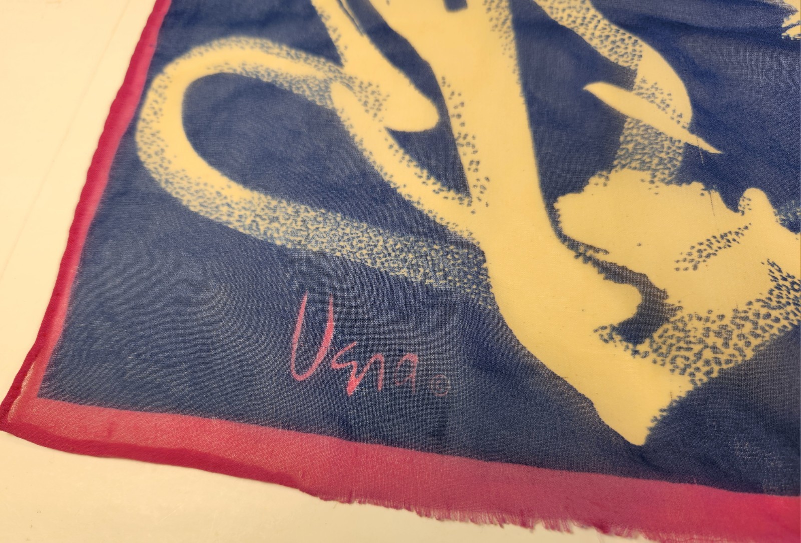как выглядит Signed Vera Neumann Scarf Designer Floral Navy Hand Rolled Polyester Square Vtg фото