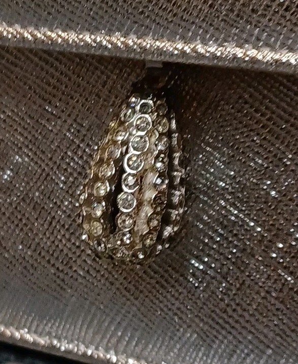 как выглядит Vintage Bienen-Davis Metallic Silver Handbag Rhinestone Teardrop Pull Clasp фото