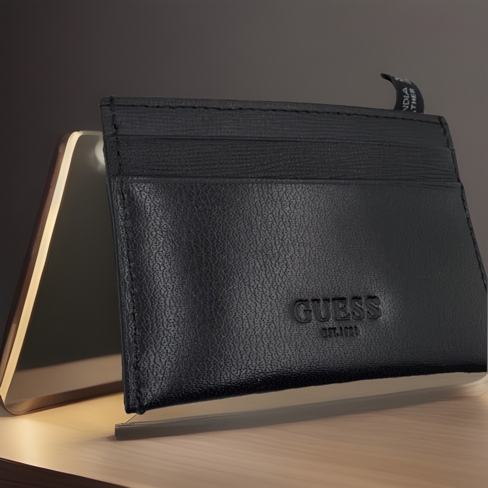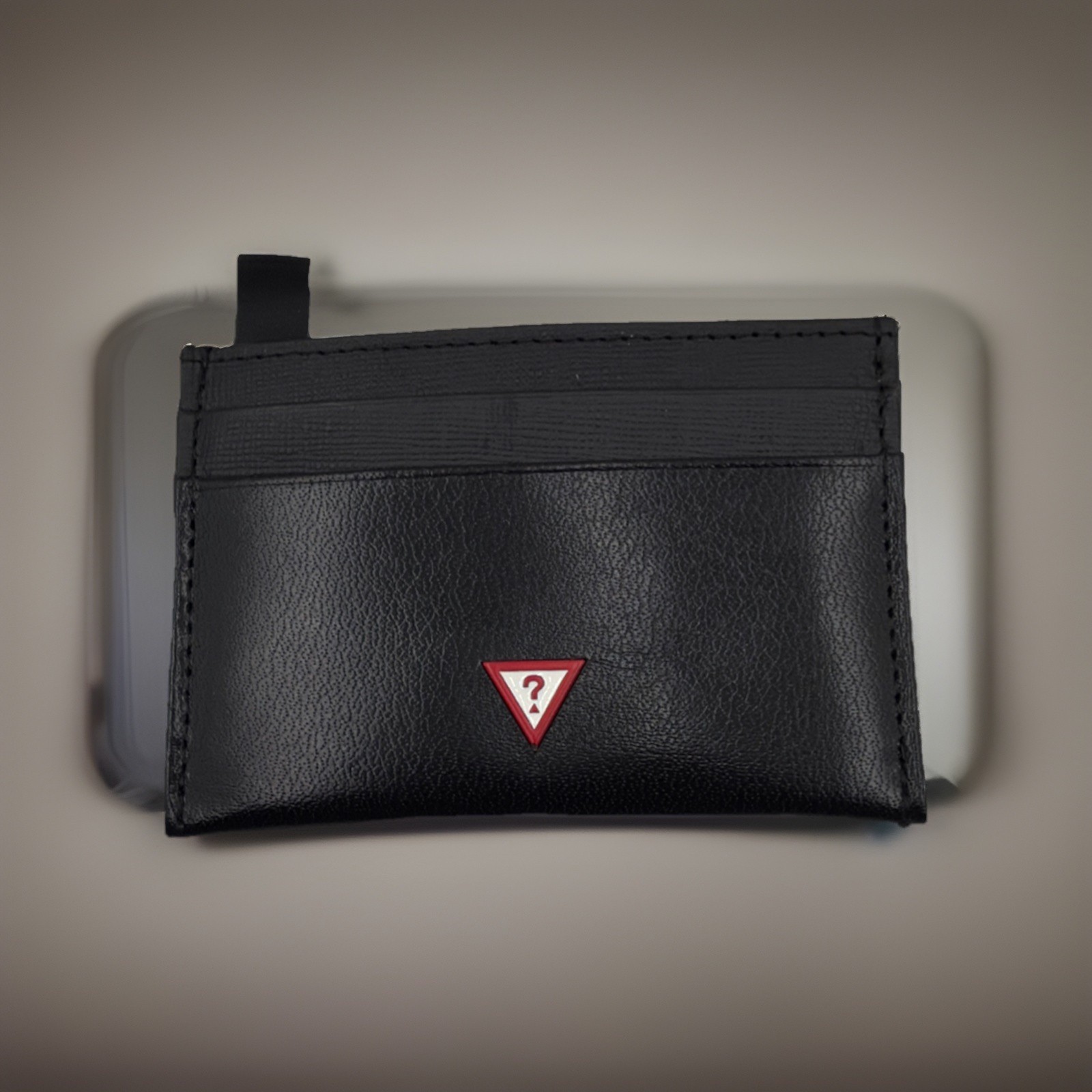 как выглядит Guess Mens Black Logo Card Case Genuine Leather Wallet фото