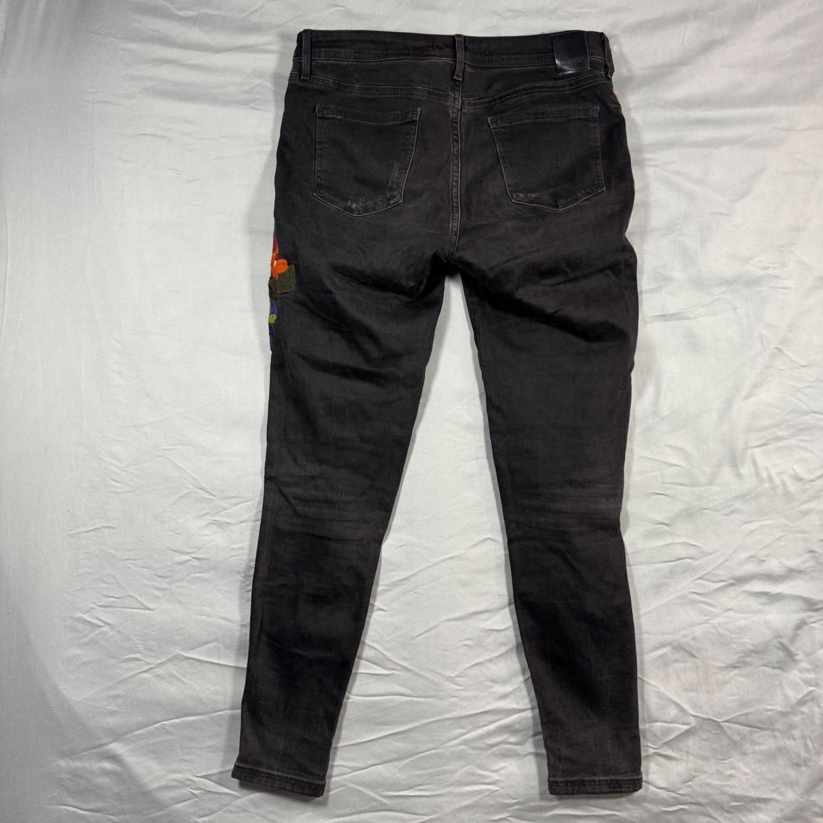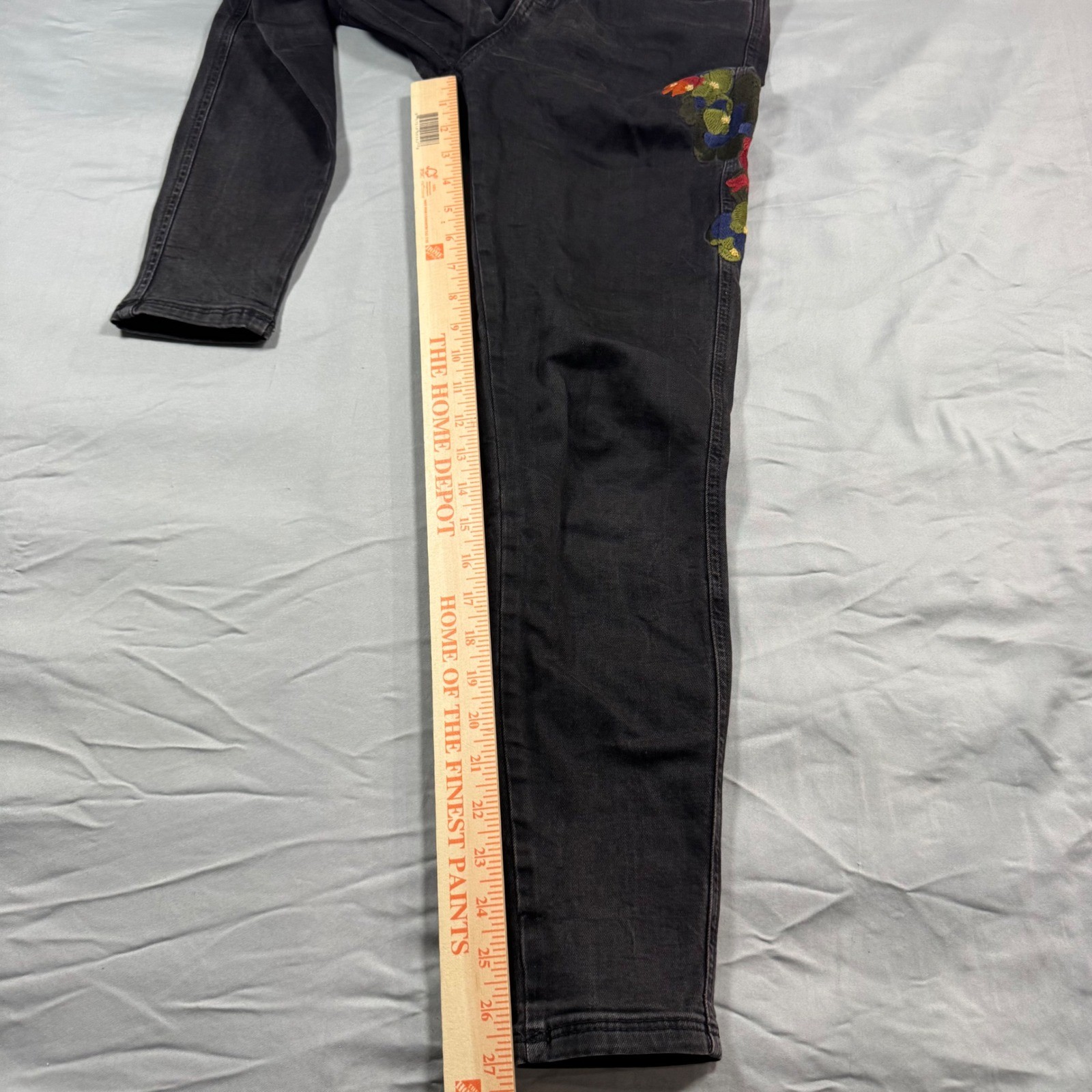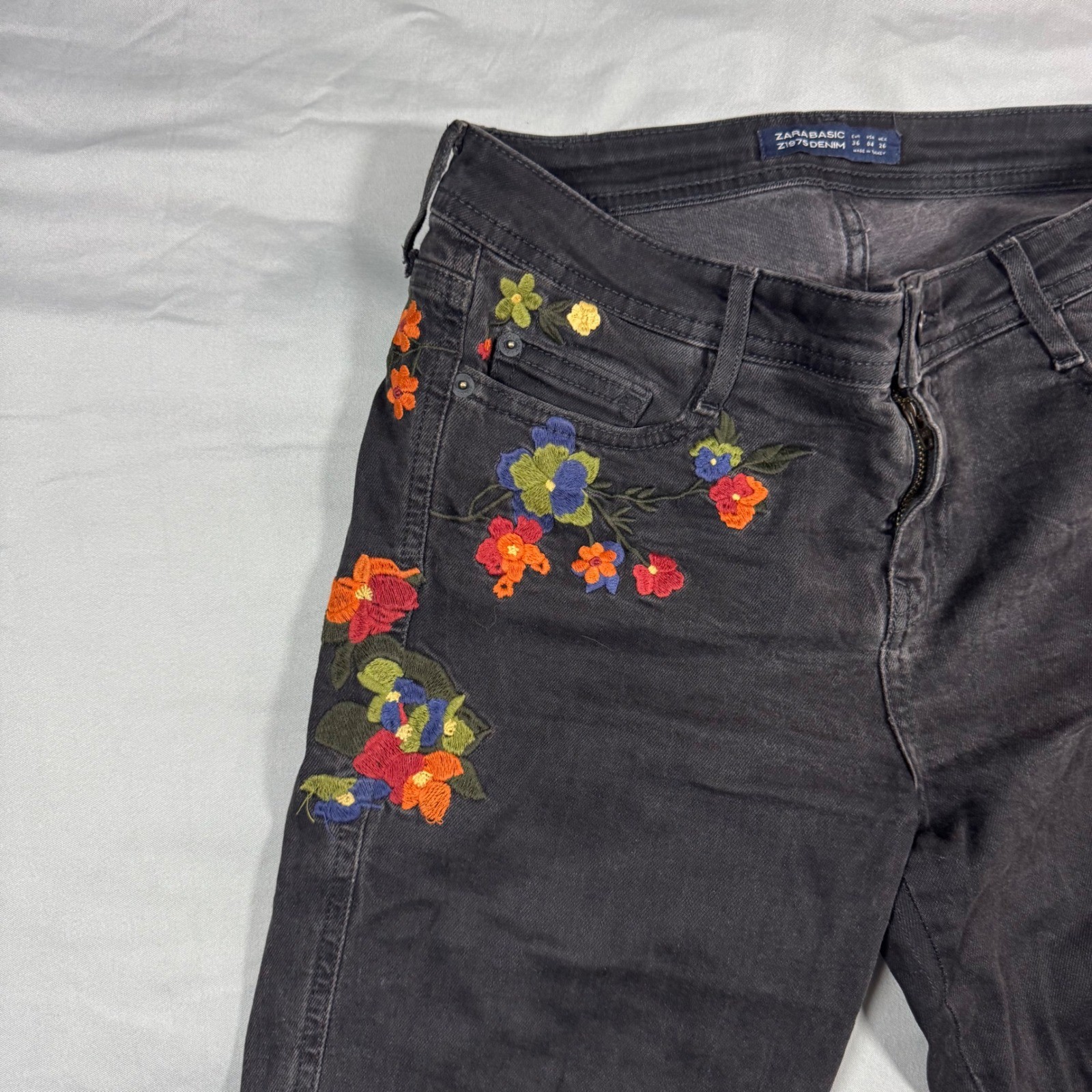 ZARA BASIC Z1975 DENIM Black Embroidered Floral Skinny Jeans Women's 4