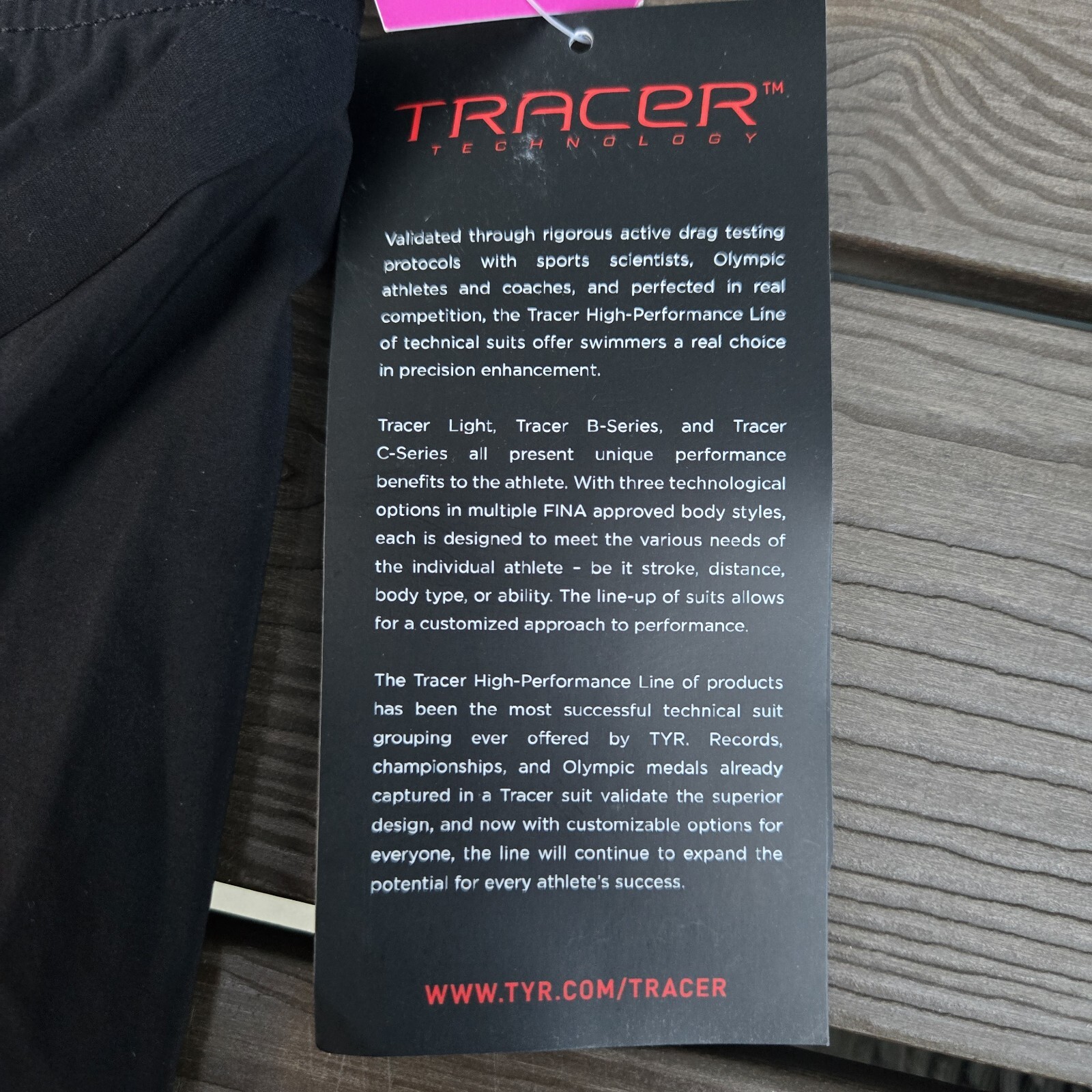 TYR Tracer Light Youth Boy's Jammer Swim Shorts Solid FINA Tech Black Sz 22 NEW