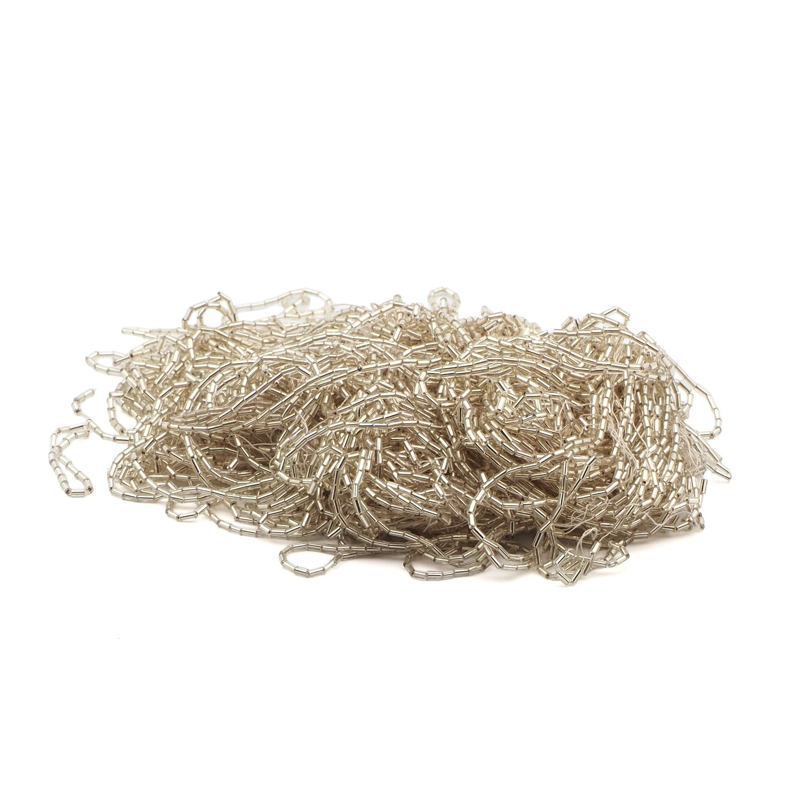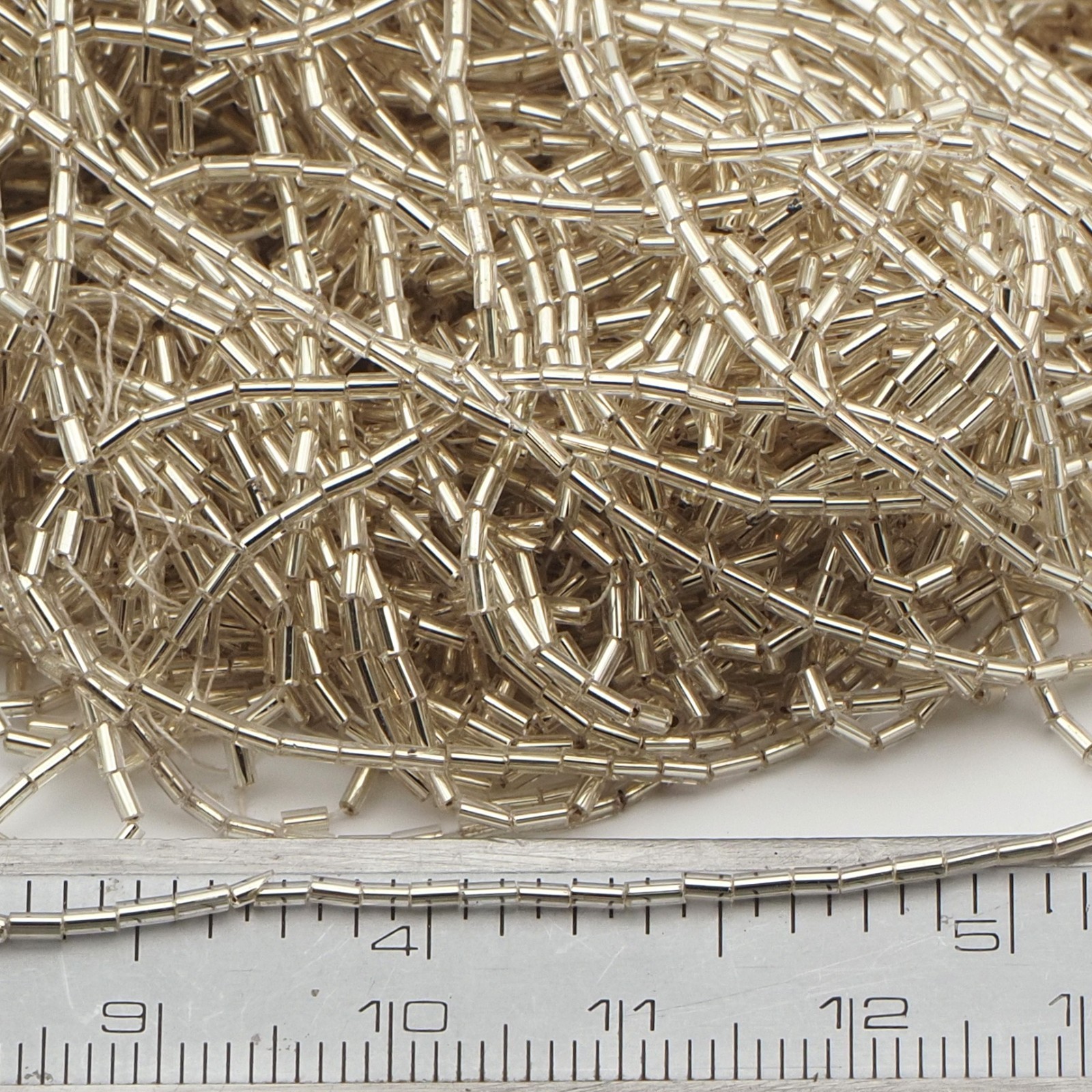 как выглядит Hank Vintage Czech SILVER lined clear bugle glass beads 50g 15/0 фото