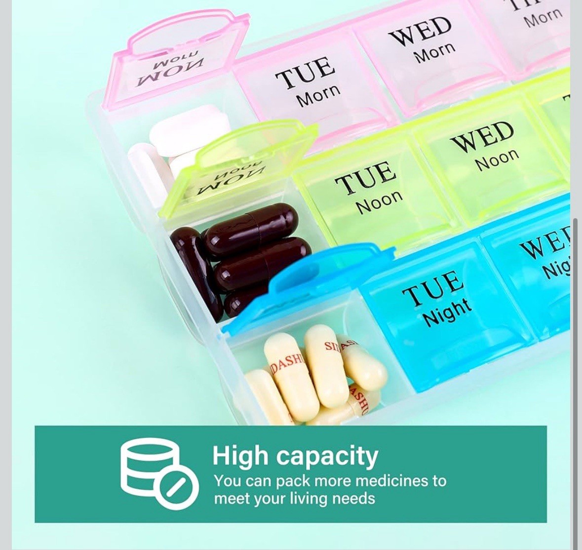 как выглядит Large Weekly Pill Organizer 3 Times A Day, Moisture-Proof 7 Day Pill Box фото