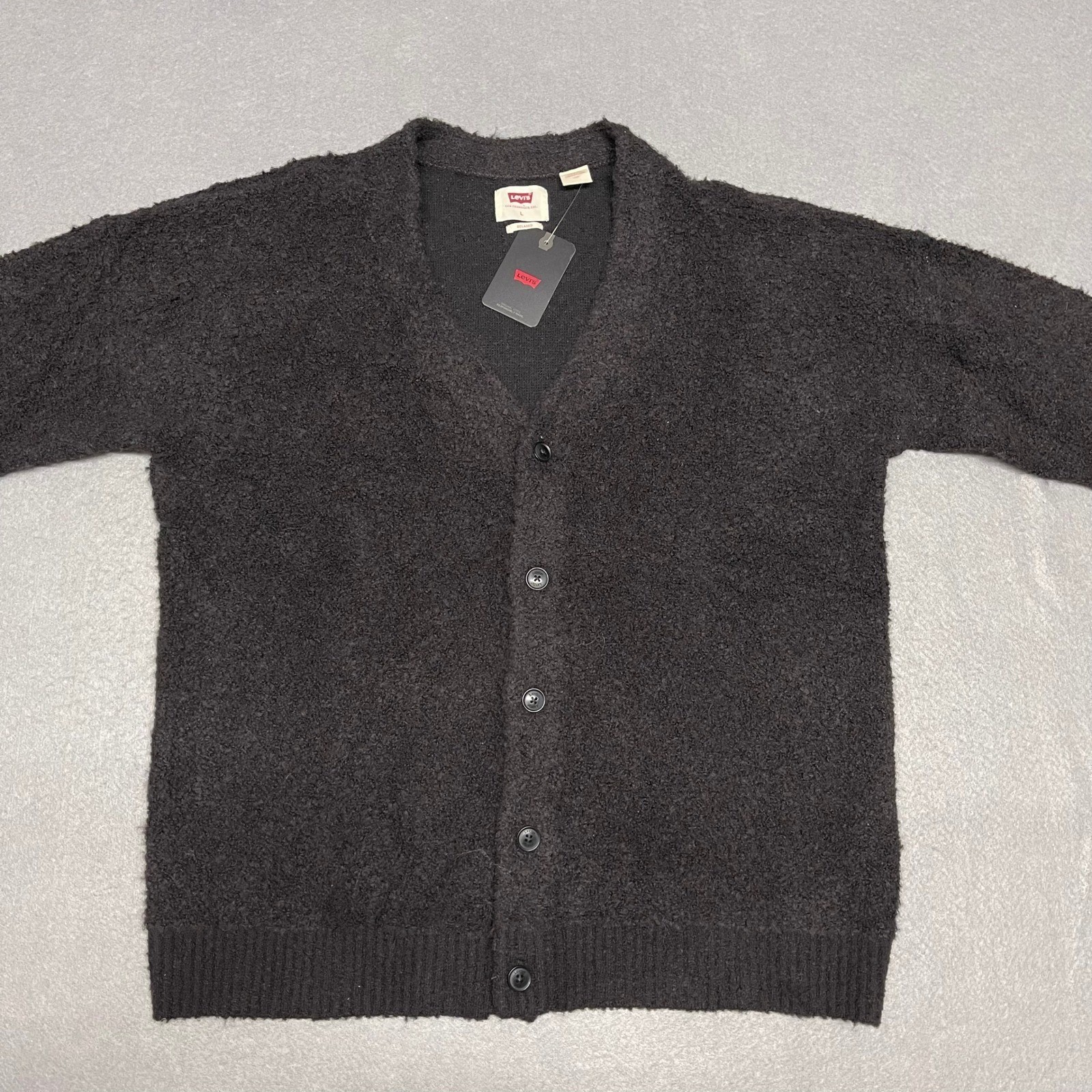 как выглядит Levis Cardigan Sweater Mens Medium Gray Coit Boxy Relax Wool Alpaca Knit Grandpa фото