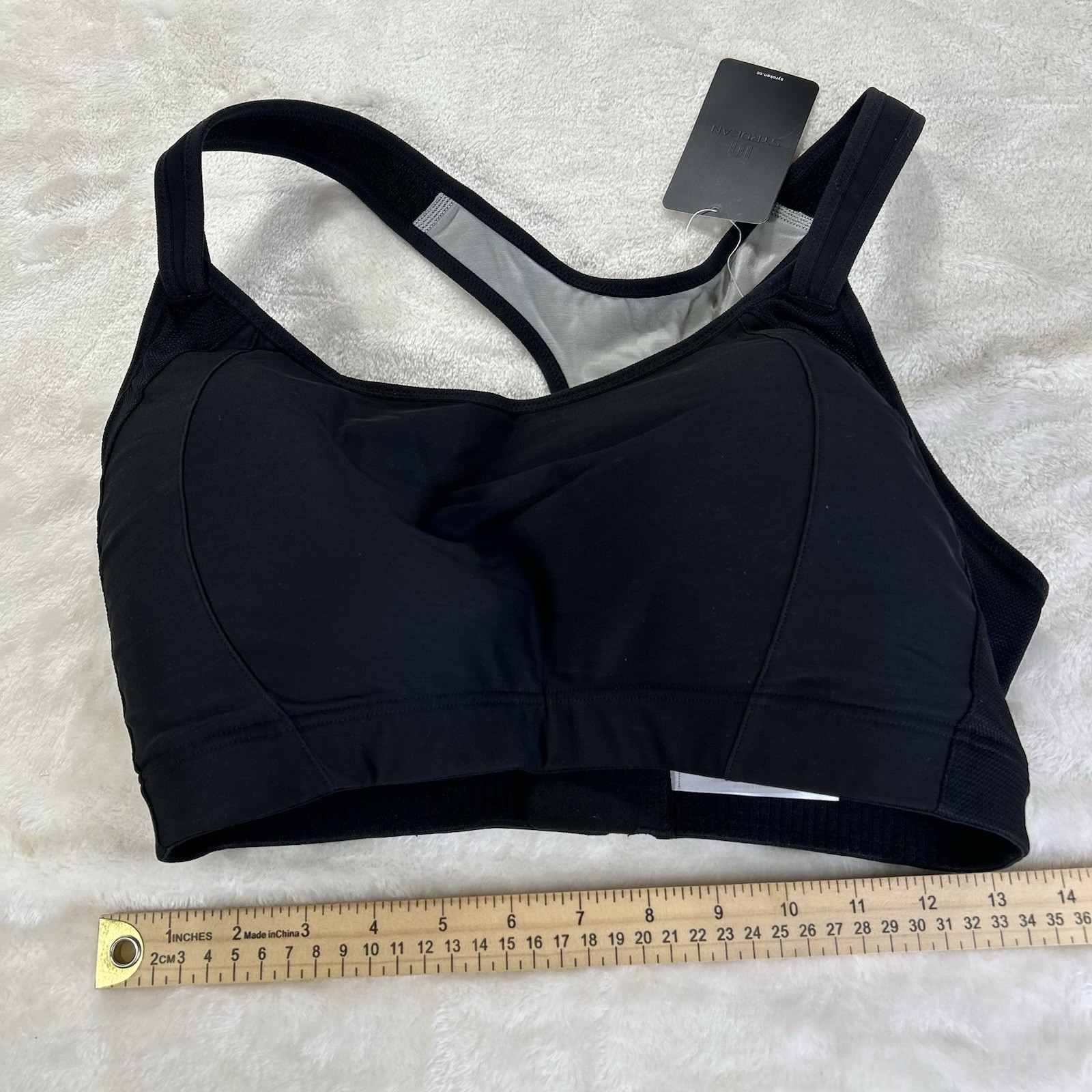 как выглядит SYROKAN Womens High Impact Sports Bra Wireless Padded Racerback 38F Black фото