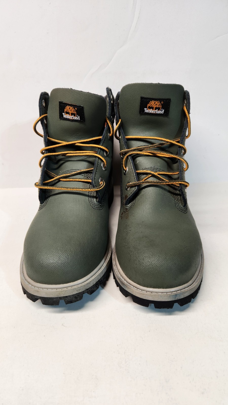 как выглядит TIMBERLAND HERITAGE 6 IN WATERPROOF BOOT DARK GREEN HELCOR USED Girl SIZE 6 фото