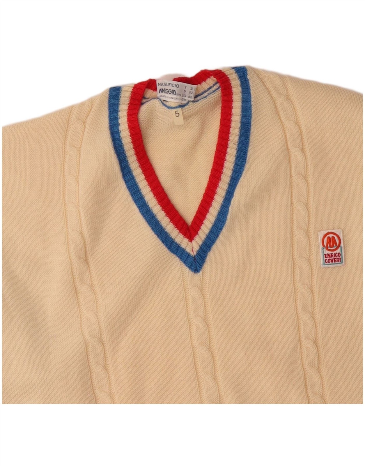 Enrico Coveri Mens V-Neck Jumper Sweater UK 40 Medium Off White Colourblock CF03