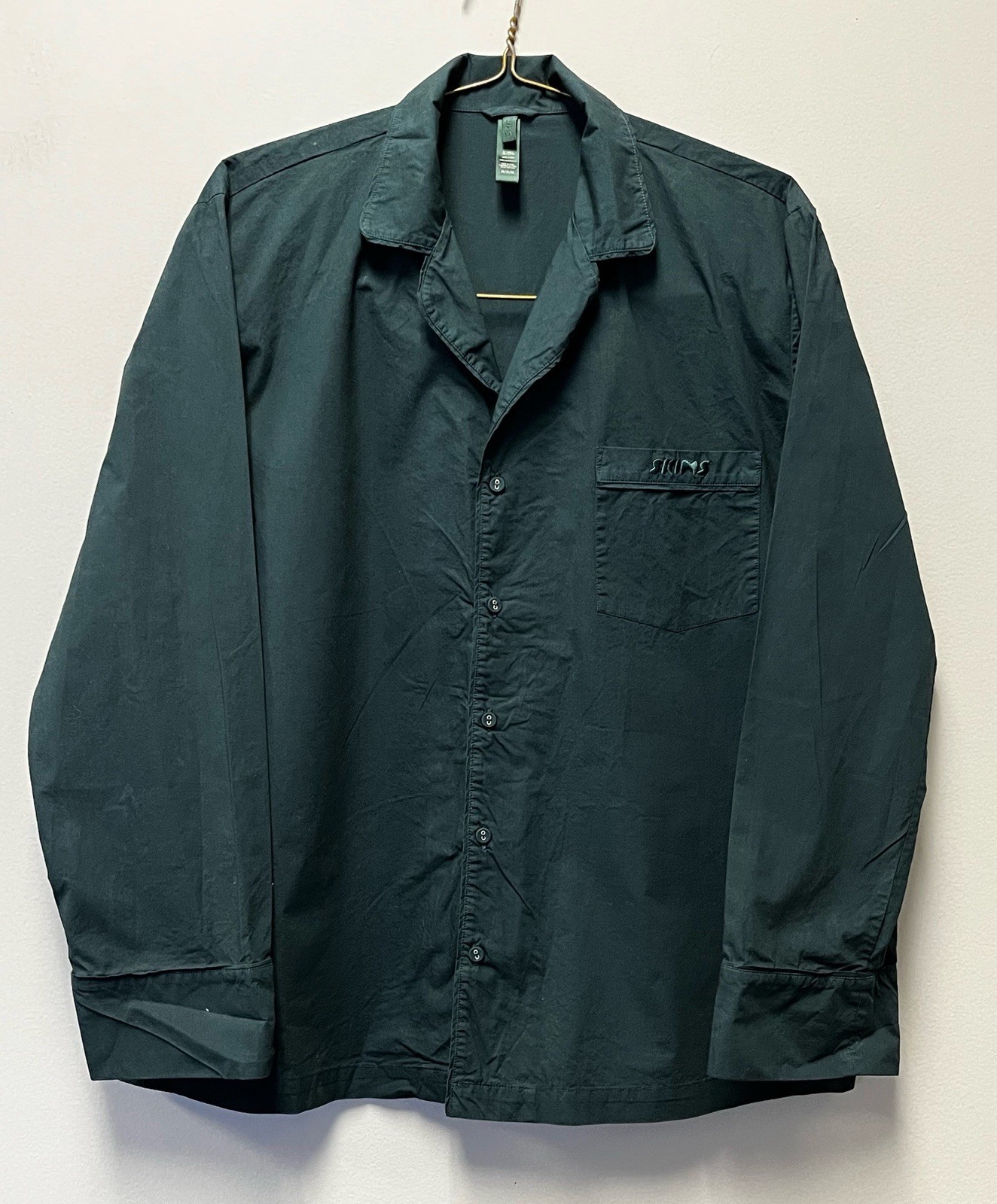 как выглядит SKIMS Pine Green Cotton Pajama Lounge Set Button Front Top Shorts S/M фото