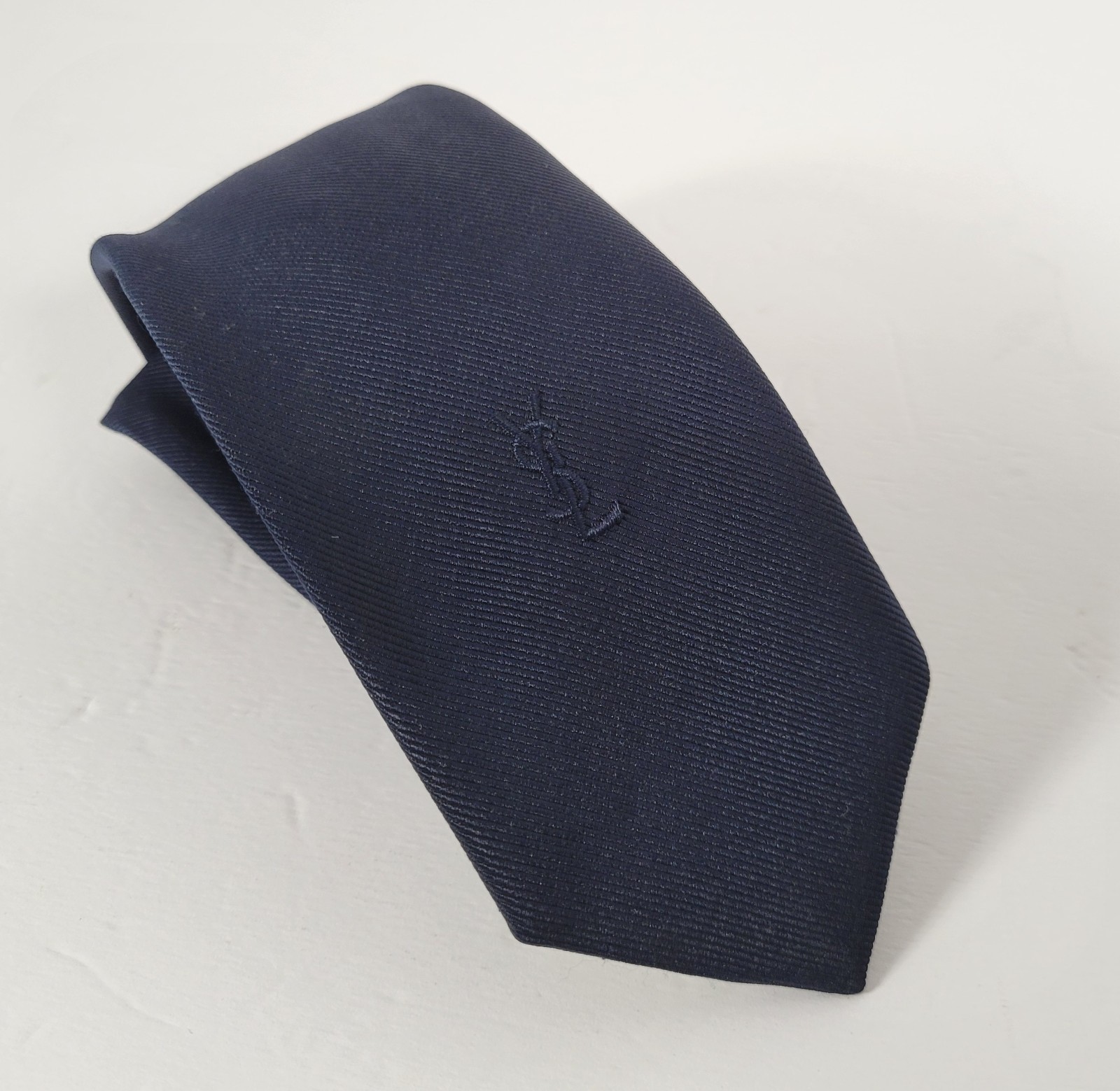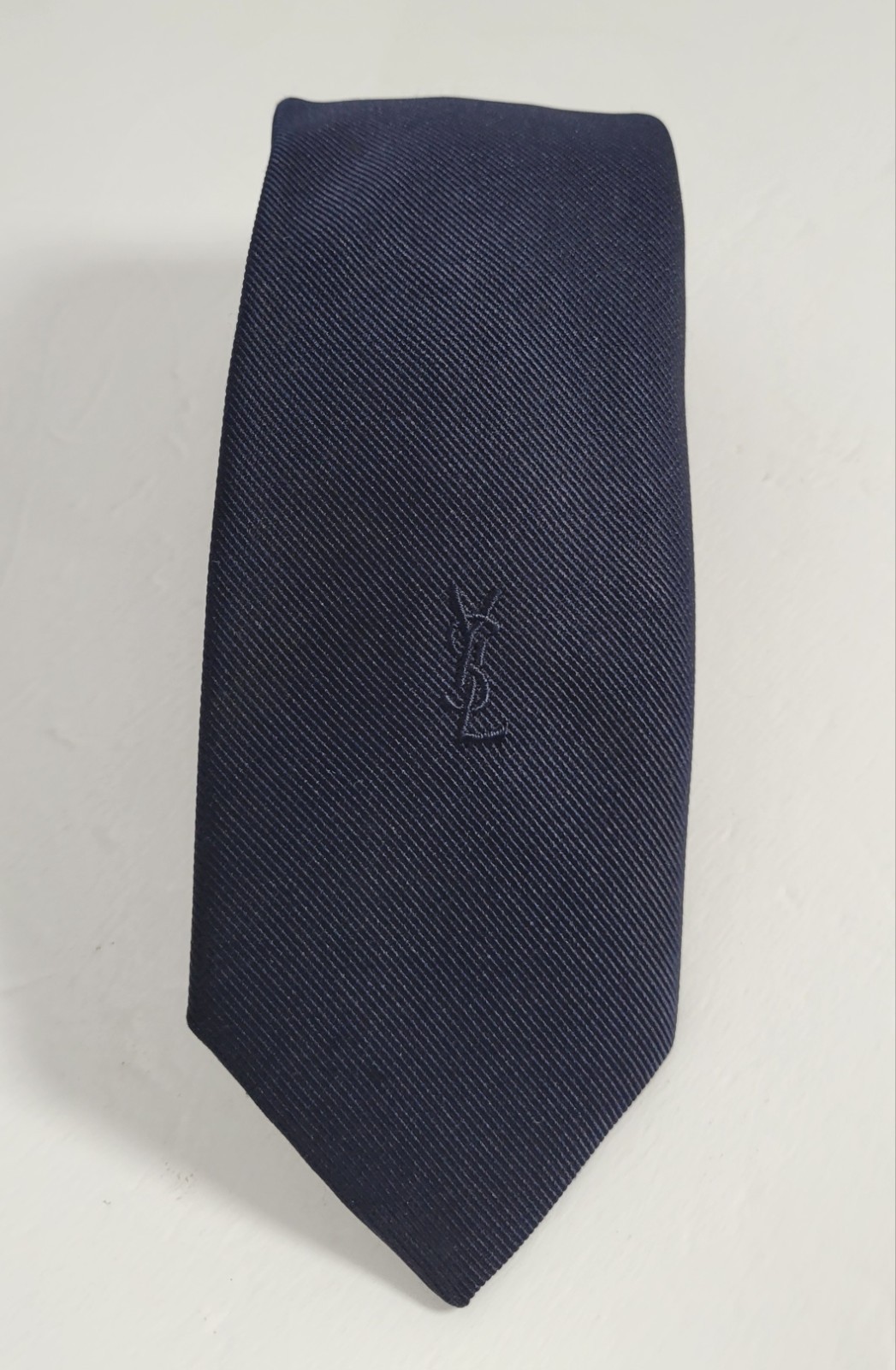 как выглядит Vintage Yves Saint Laurent YSL Luxury Mens Silk Neck Tie Navy - PLEASE READ фото