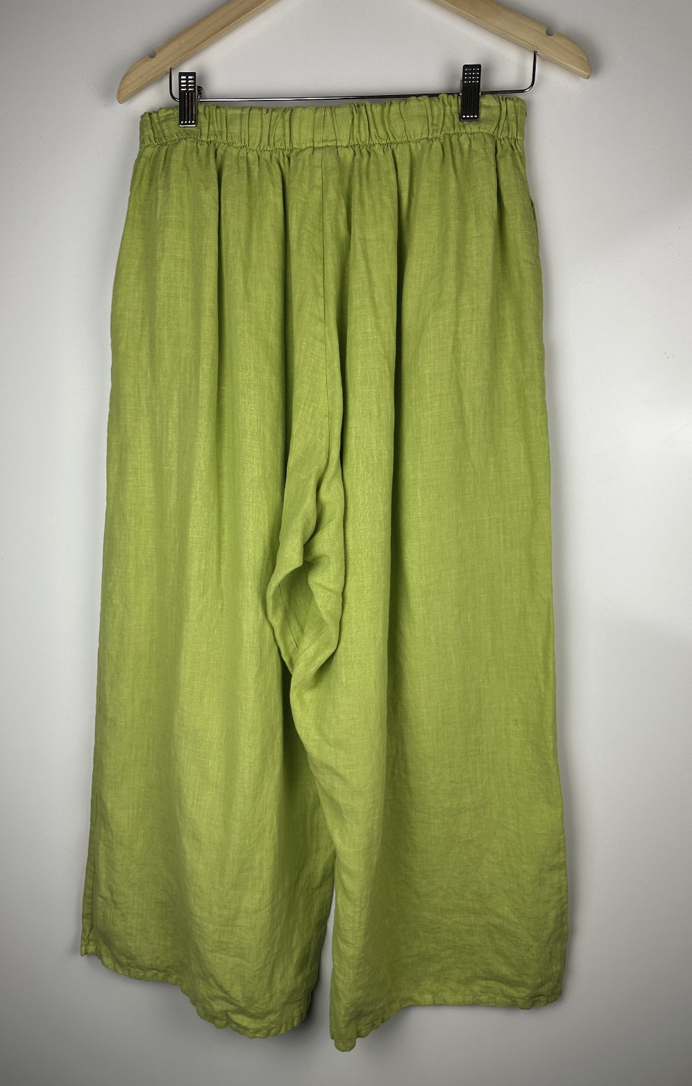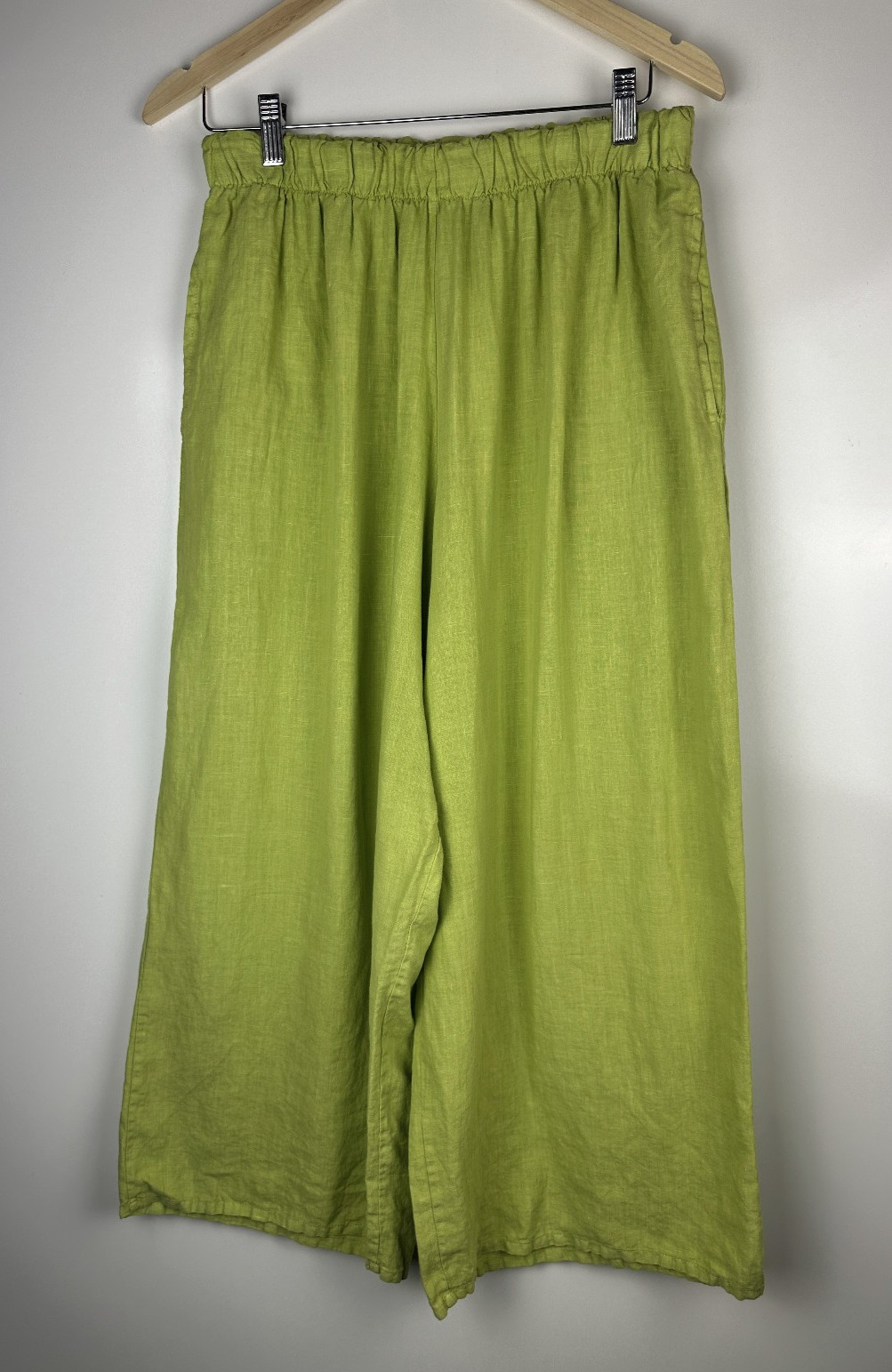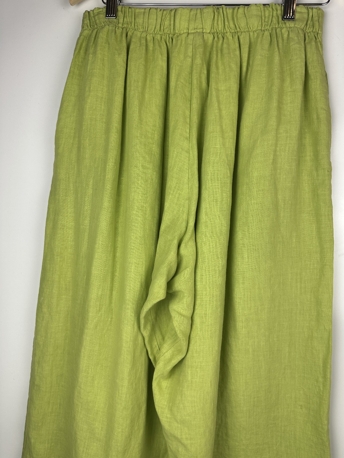 Bryn Walker 100 Linen Wide Leg Pull-On Pant Stretch Lagenlook Green Size Medium