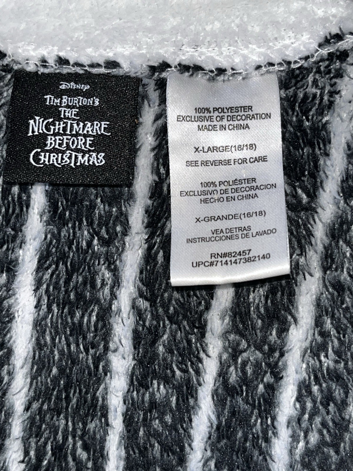 JACK SKELLINGTON 1pc Fleece Costume Adult XL 16-18 Nightmare Before Xmas Disney