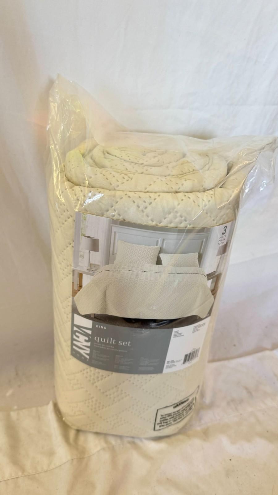 New VCNY Home Ivory Quilt for King Size Bed 3-Piece Bed Set Comforter Set