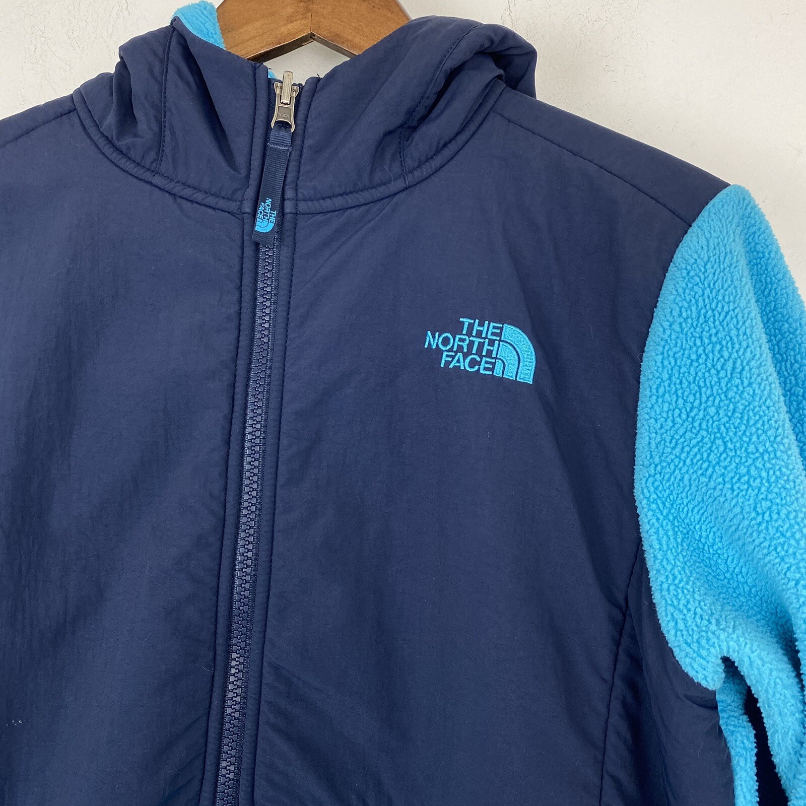 как выглядит The North Face size XL 18 Girls Blue Fleece Full Zip Hooded Jacket фото