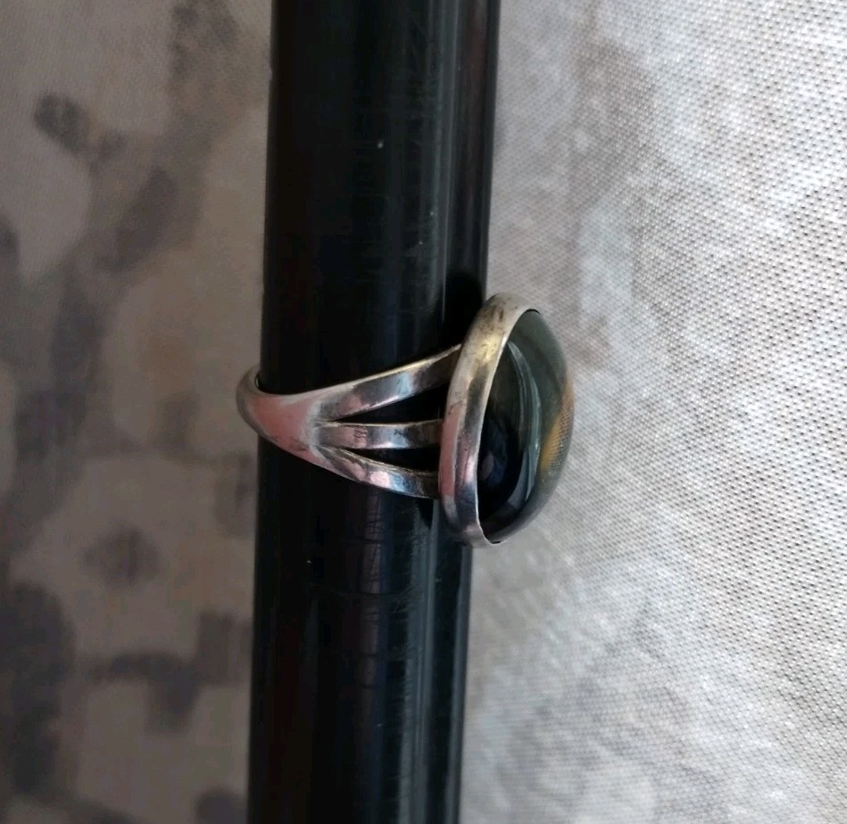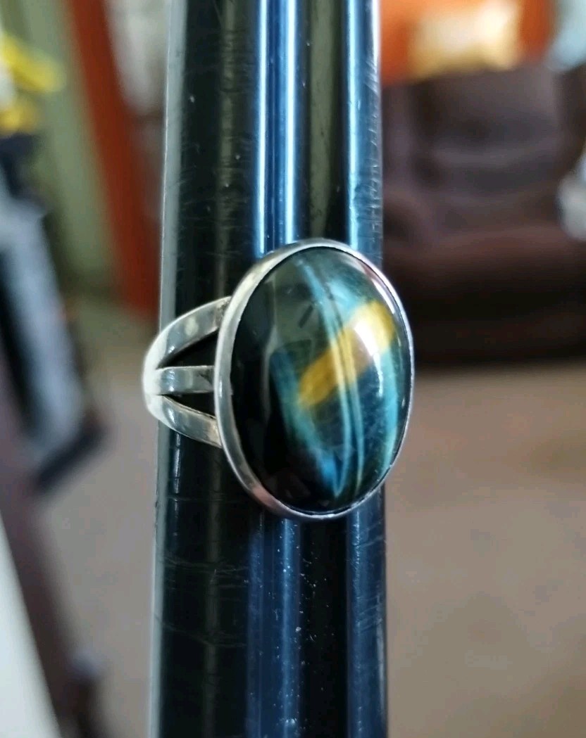 как выглядит Vintage Solid Sterling Silver Ring Tiger s Eye / Hawk s Eye Cabochon Size 6-1/2 фото