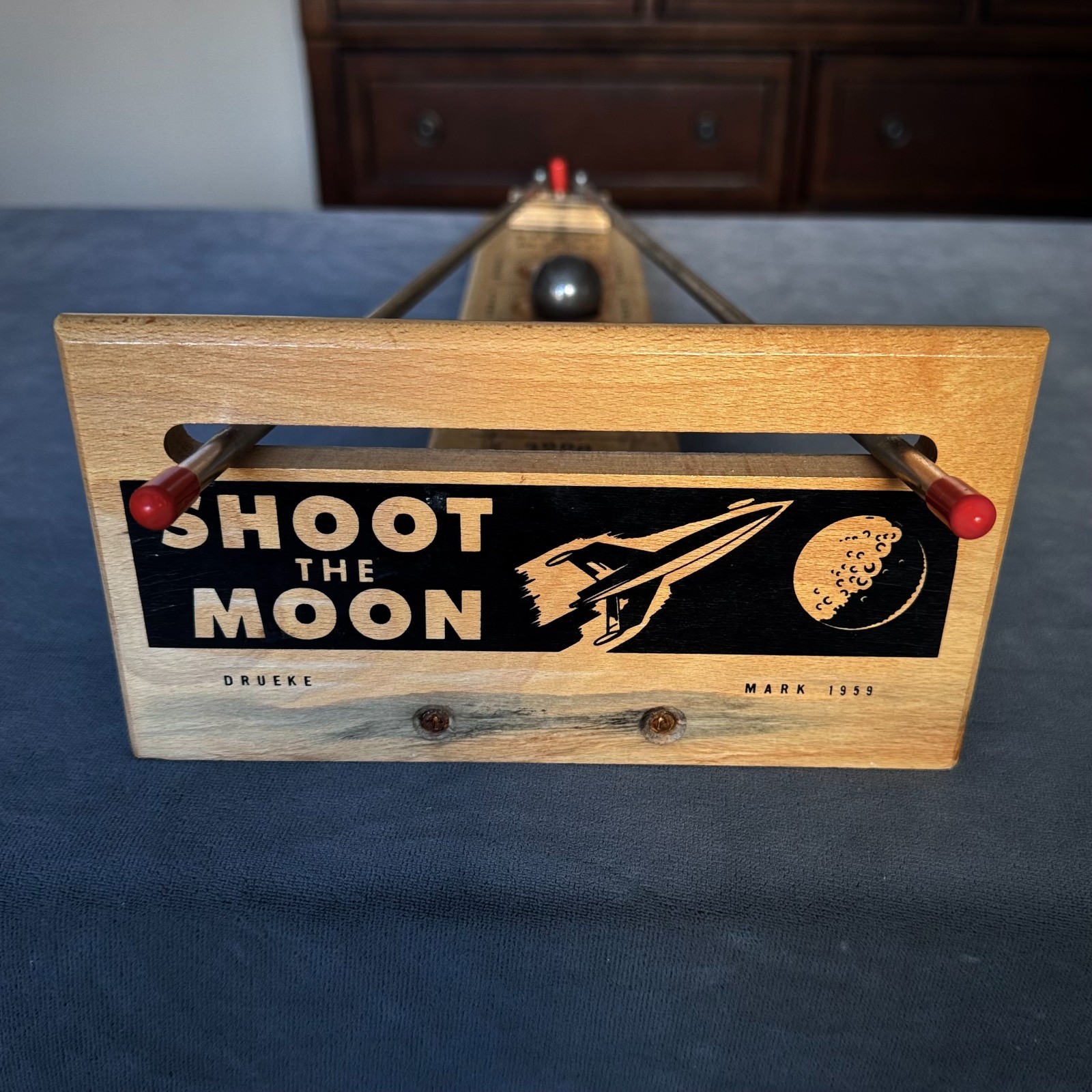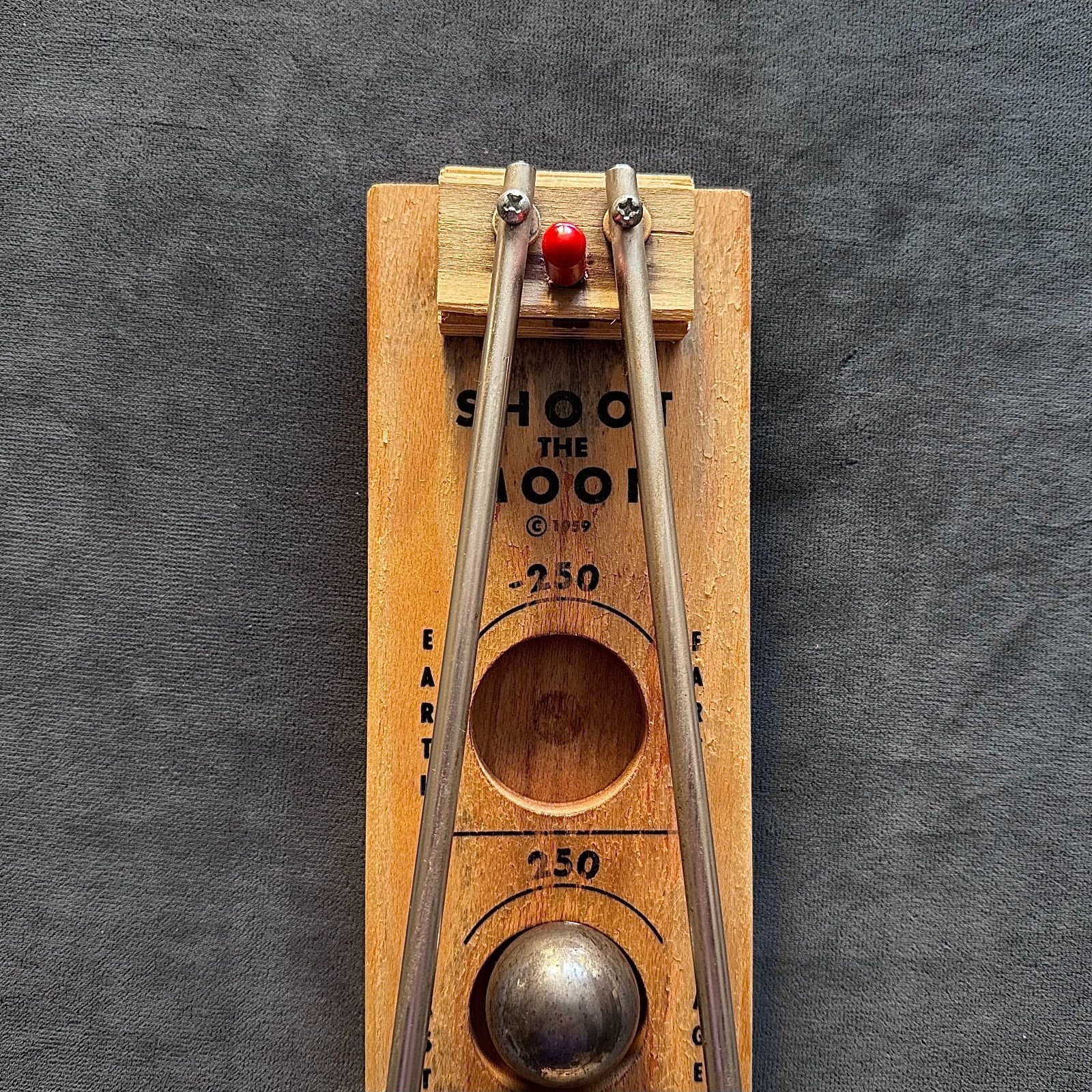Vintage 1959 Shoot the Moon Game Wooden Toy Mid Century Space Race with Ball