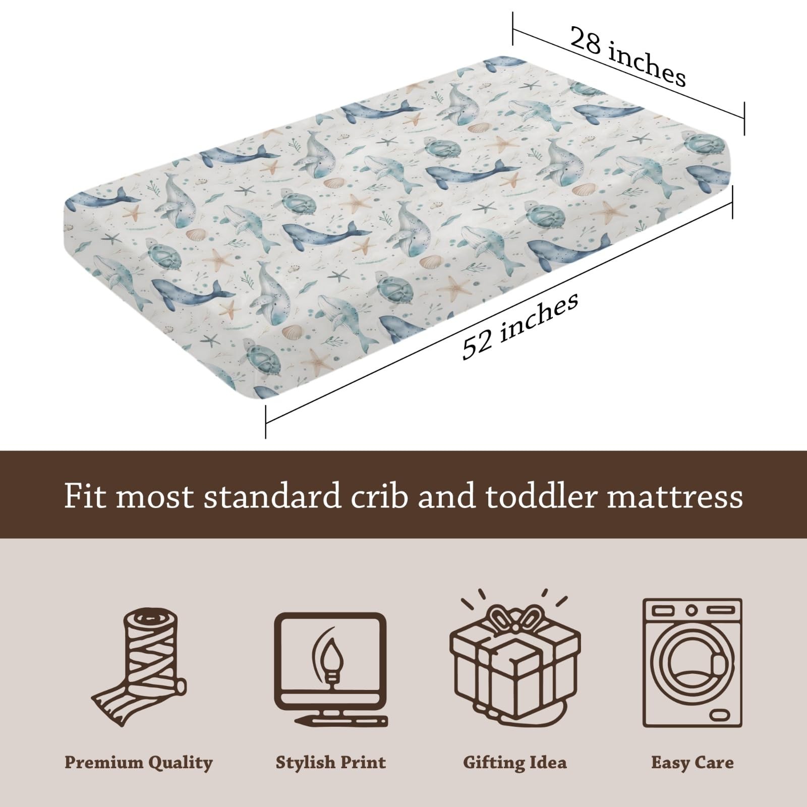 Ocean Whale Sea Turtle Starfish Pattern Baby Crib Sheets, Unisex Sea Animals ...