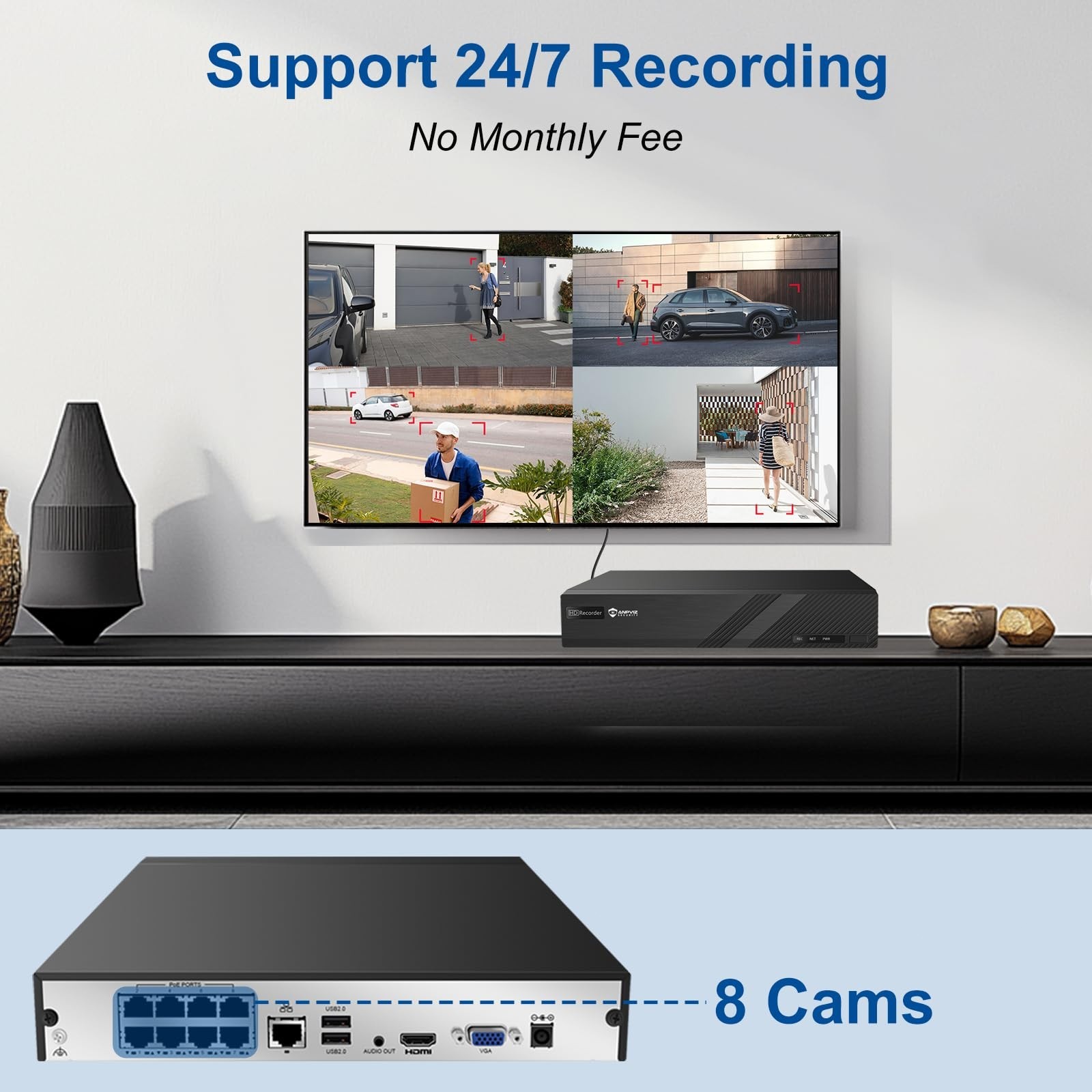 Anpviz 8CH PoE NVR for Home Security Camera System, Support 8MP/3K PoE Camera