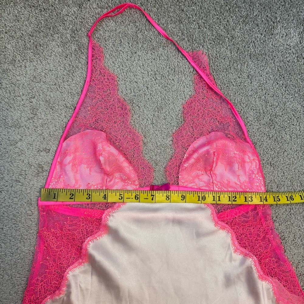 как выглядит Victorias Secret Chantilly Lace Trim Babydoll Slip Pink Cream L фото