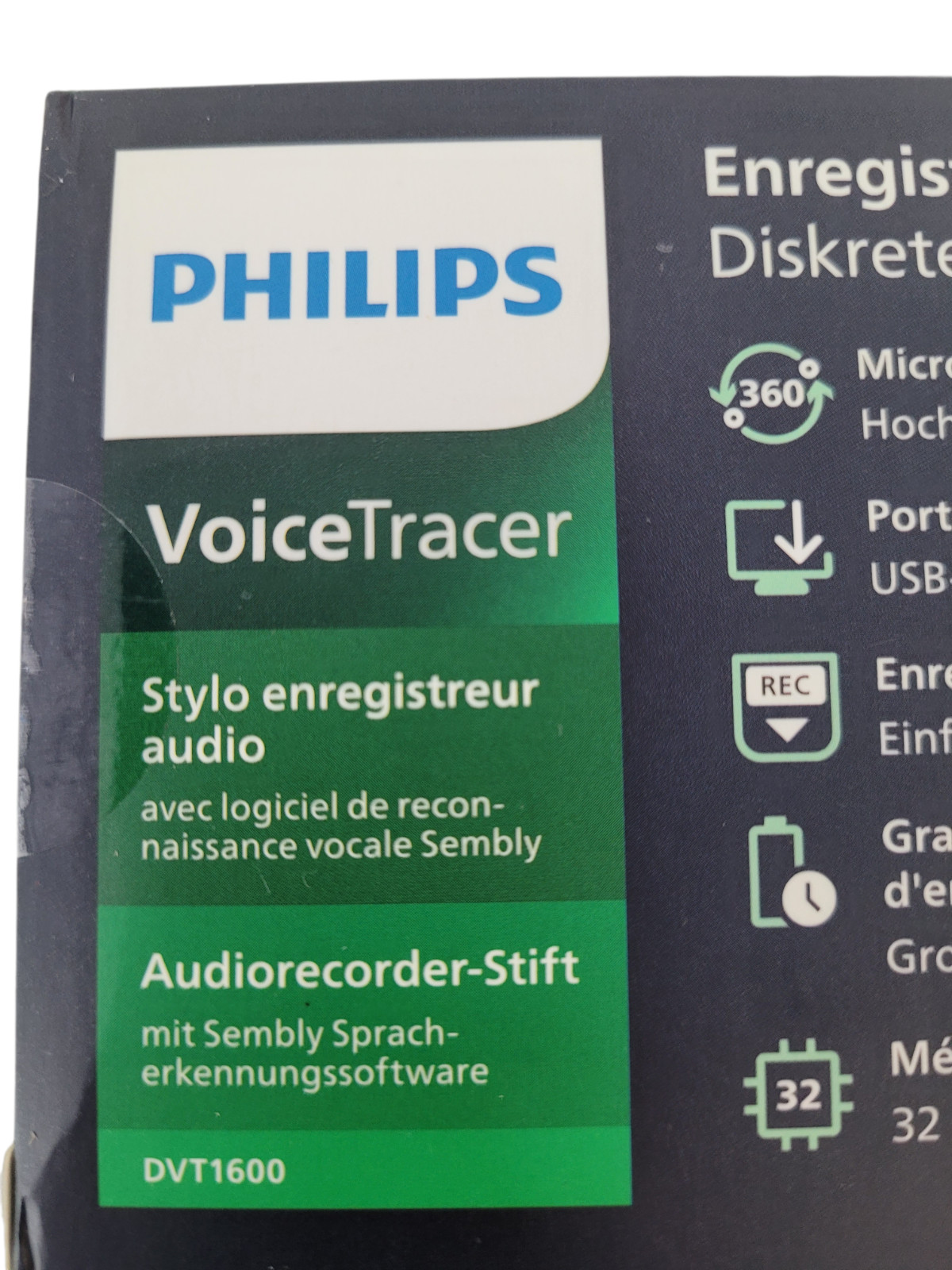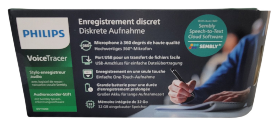 Philips VoiceTracer DVT1600 32GB Digital Voice Recorder Pen Sembly Speech NIB
