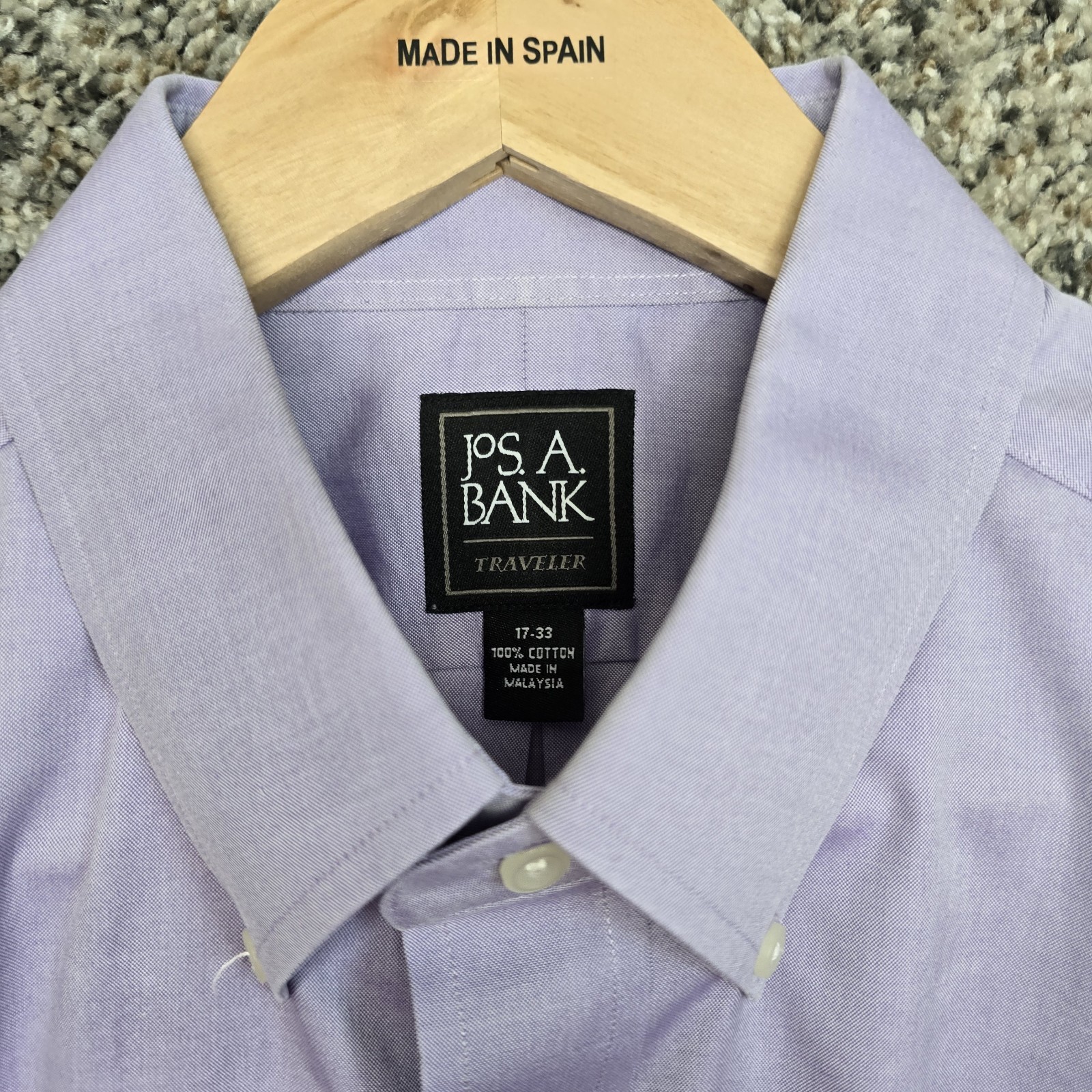 как выглядит Jos A Bank Dress Shirt Mens 17 33 Purple Button Up Traveler Collection Cotton фото