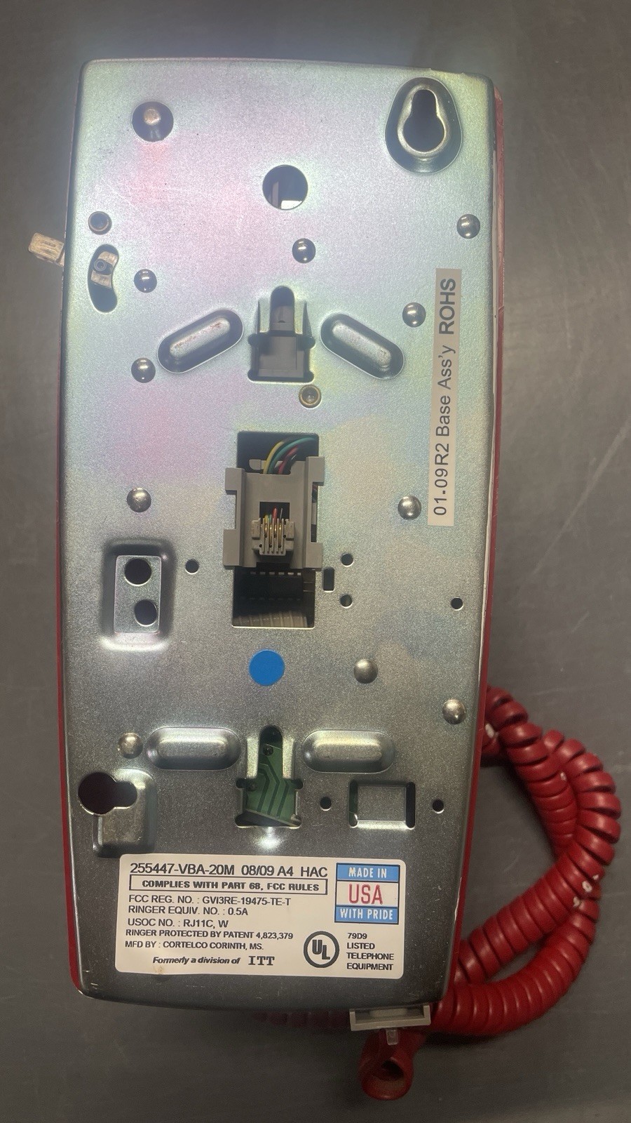 Cortelco 255447-VBA-20M RED Push Button Wall Phone Telephone Single Line