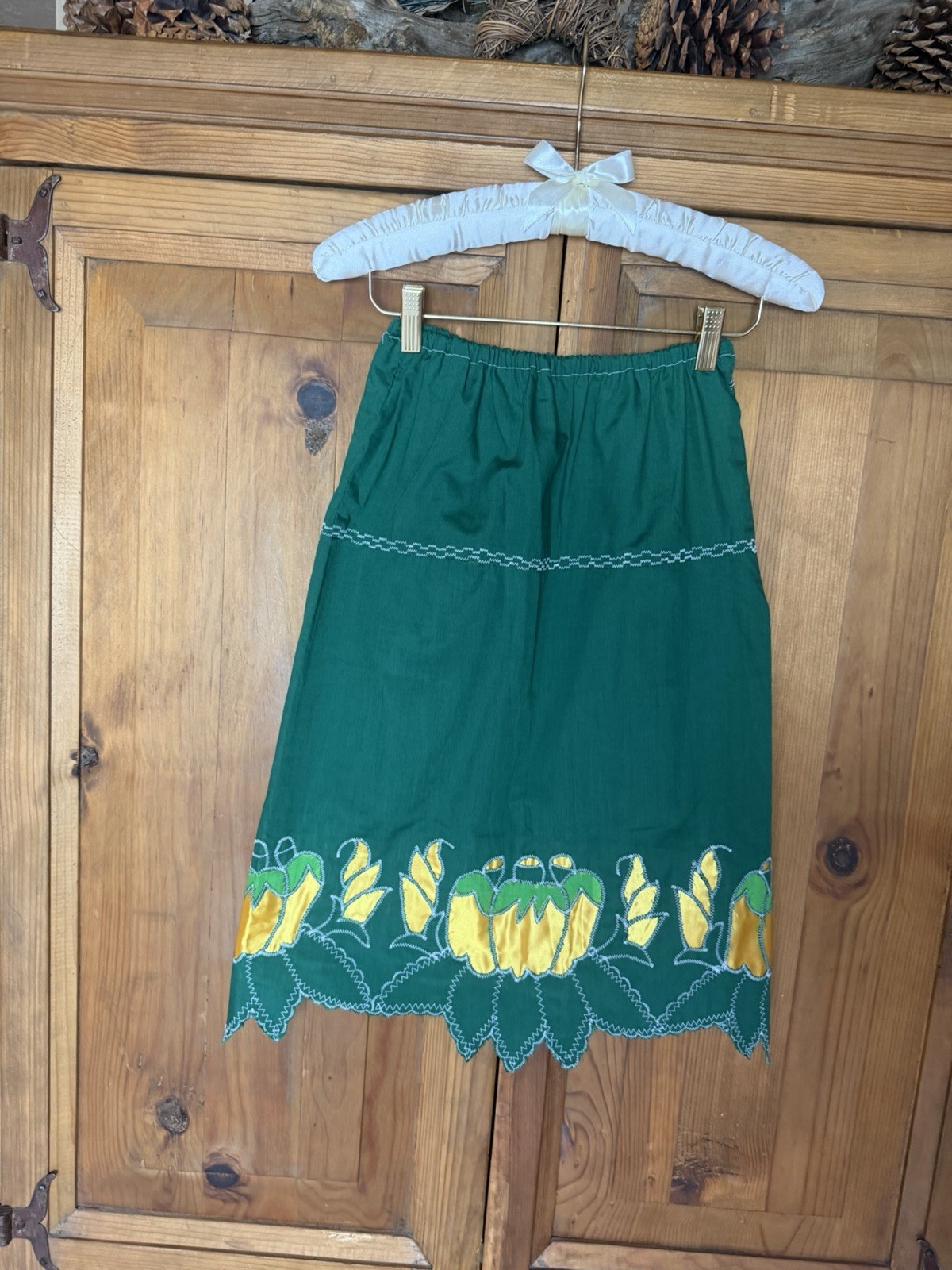 как выглядит 2 Vintage Mexican Skirts Girls Handmade Floral Novelty See Measurements 142 фото