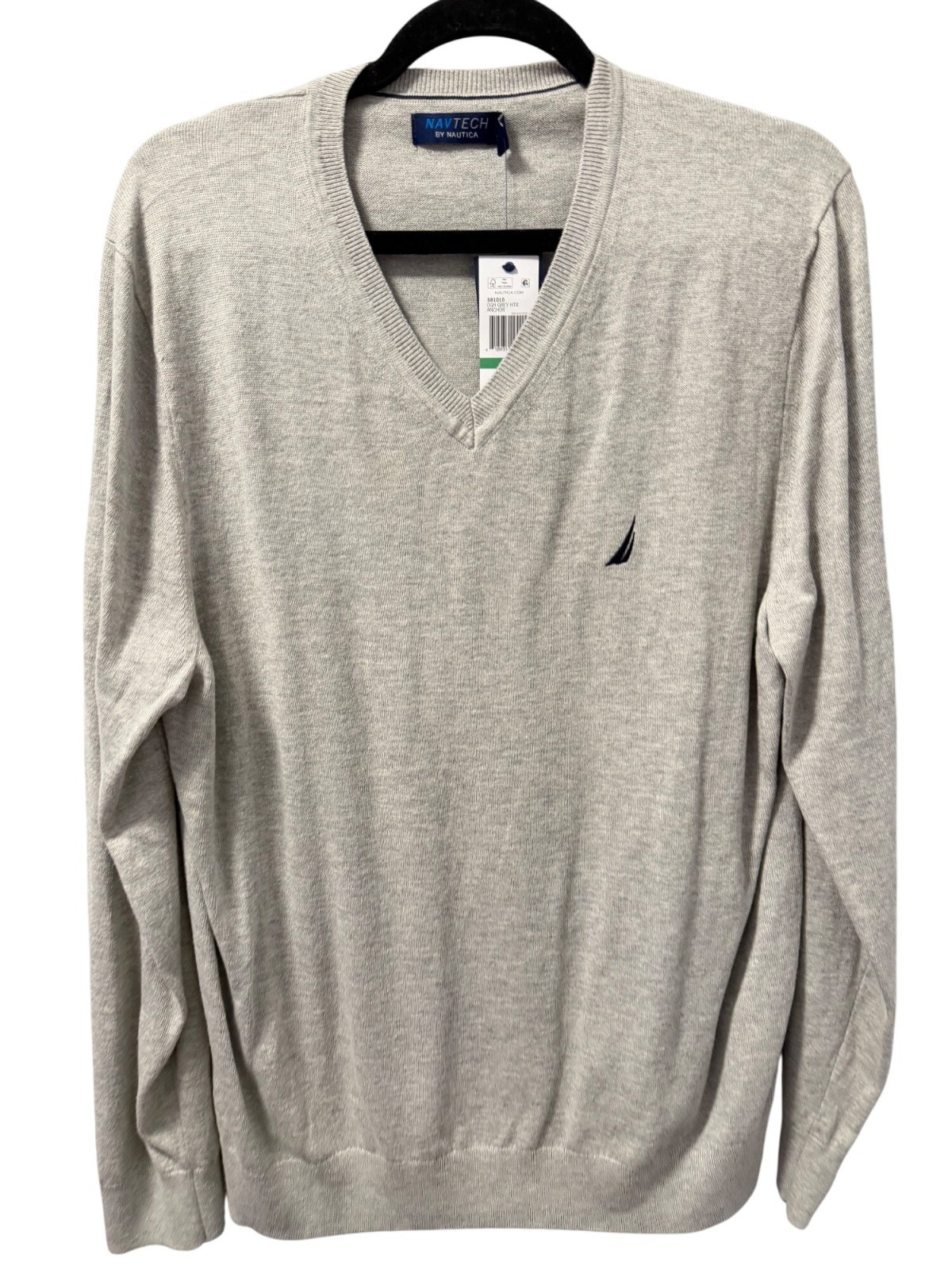 как выглядит Nautica Mens Navtech V-Neck Sweater Sz Large Grey sweater. NWT фото