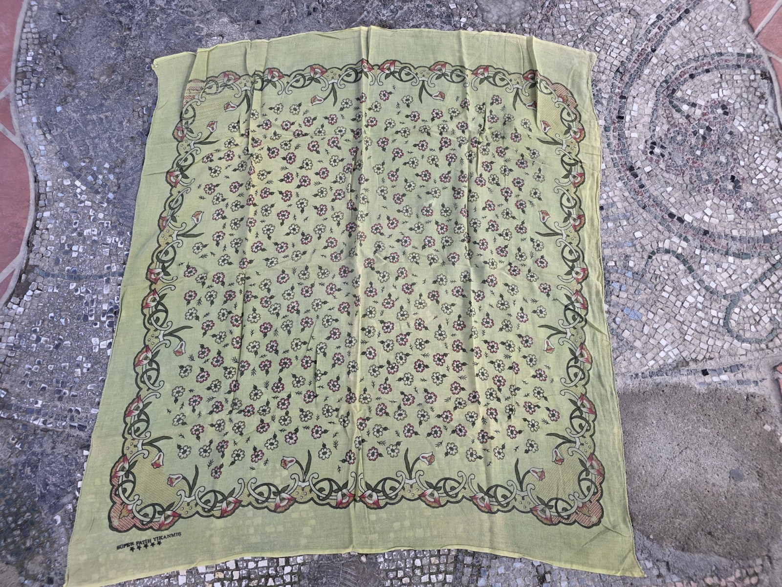 как выглядит Light green cotton scarf, vintage 1990s Turkish headscarf, lightweight scarf фото