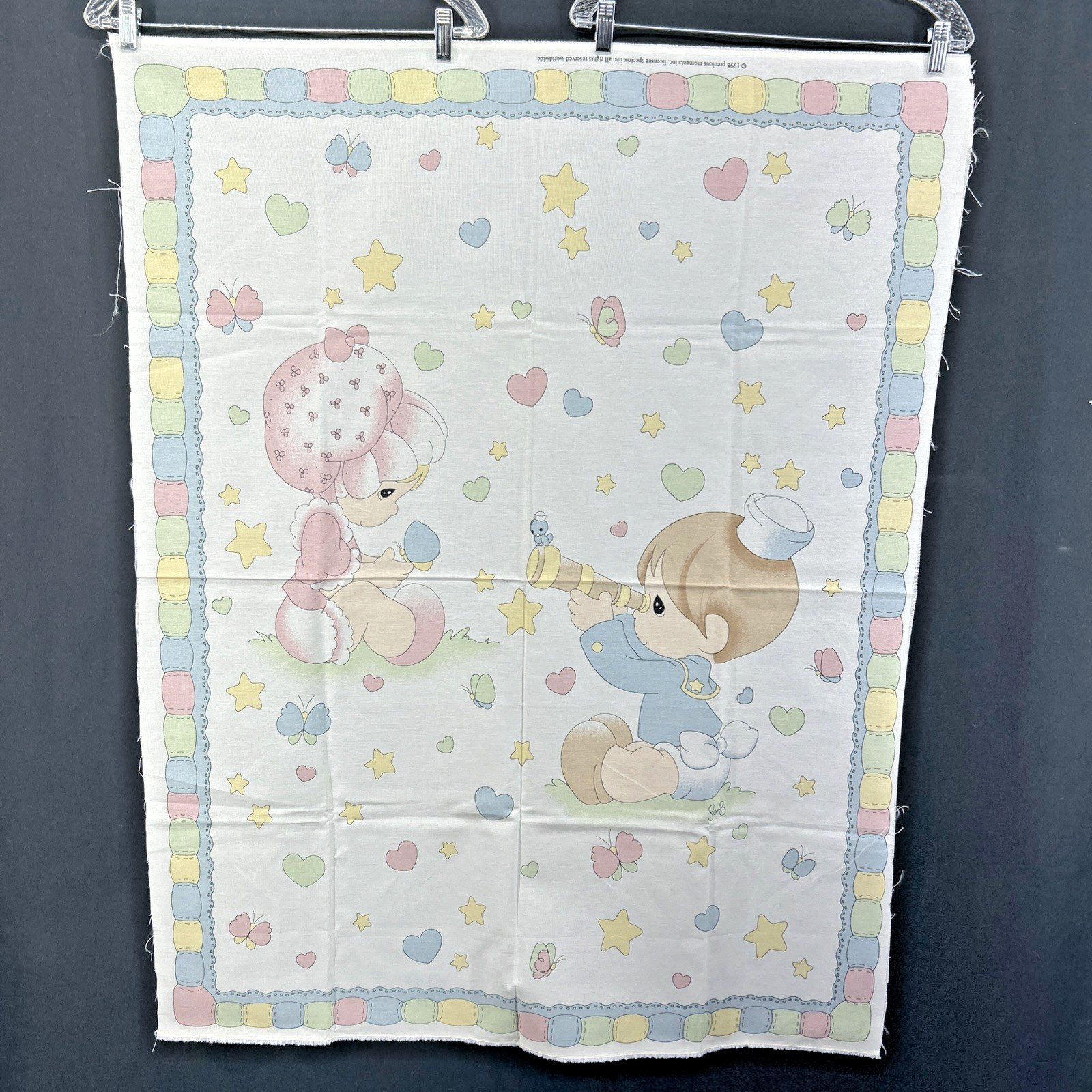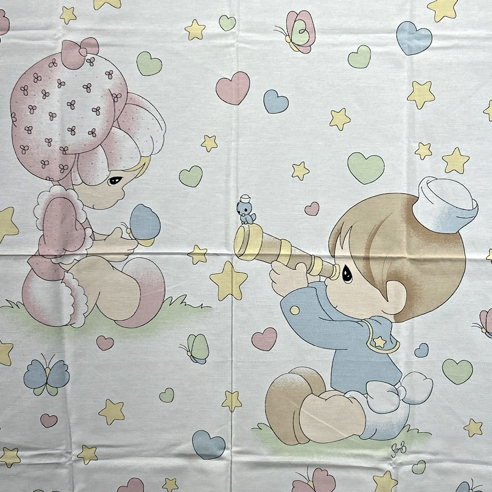 Vtg 1998 Precious Moments Boy Girl Crib Blanket/Sheet Fabric Panel Hearts Stars