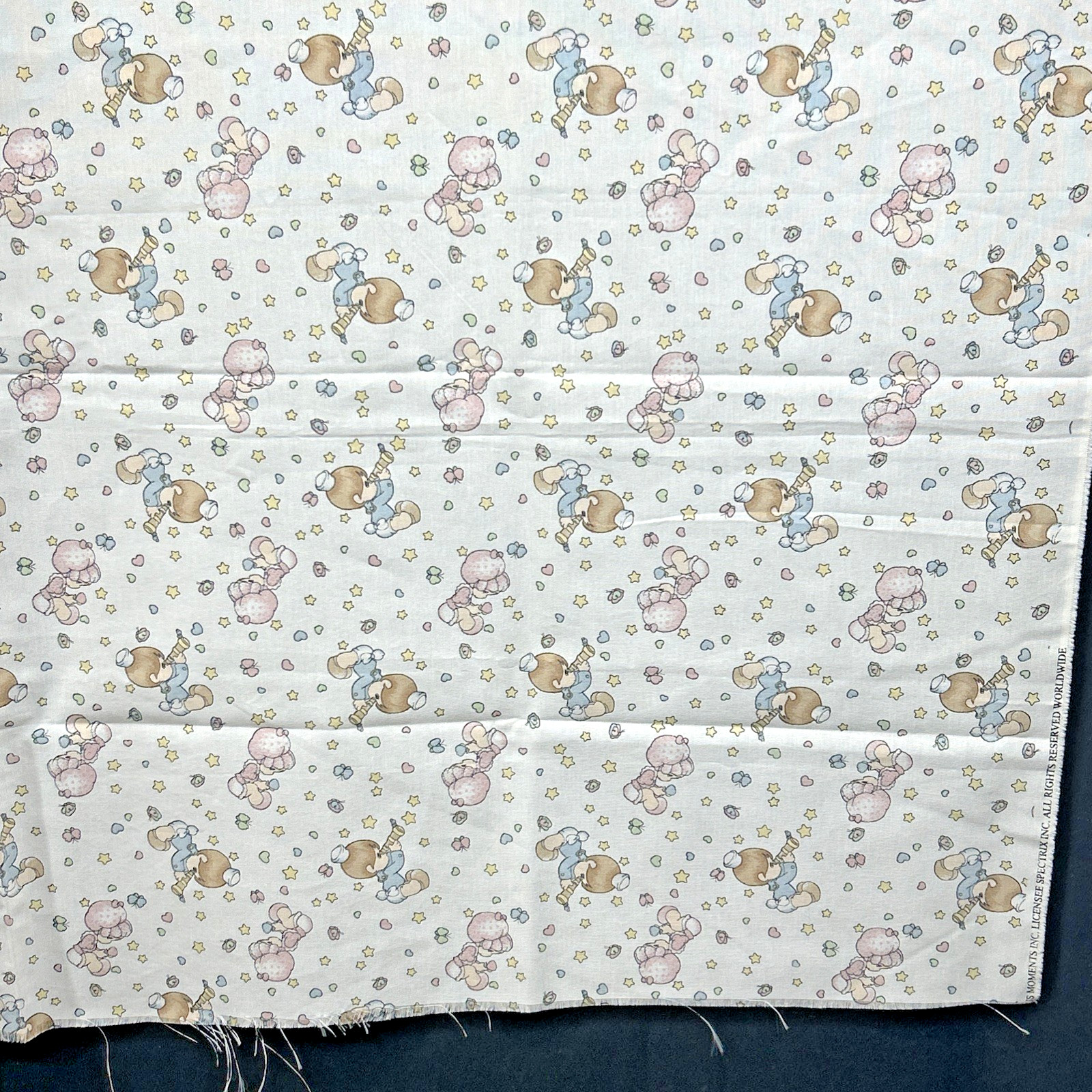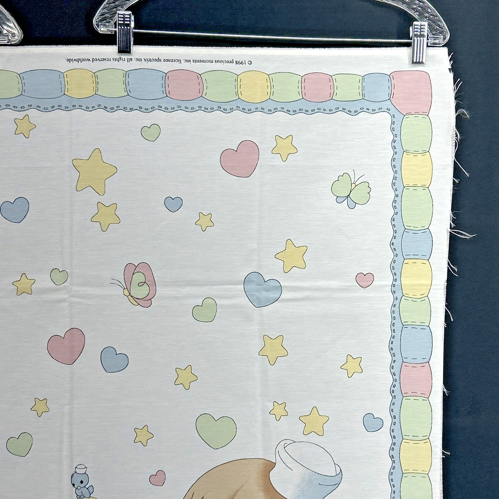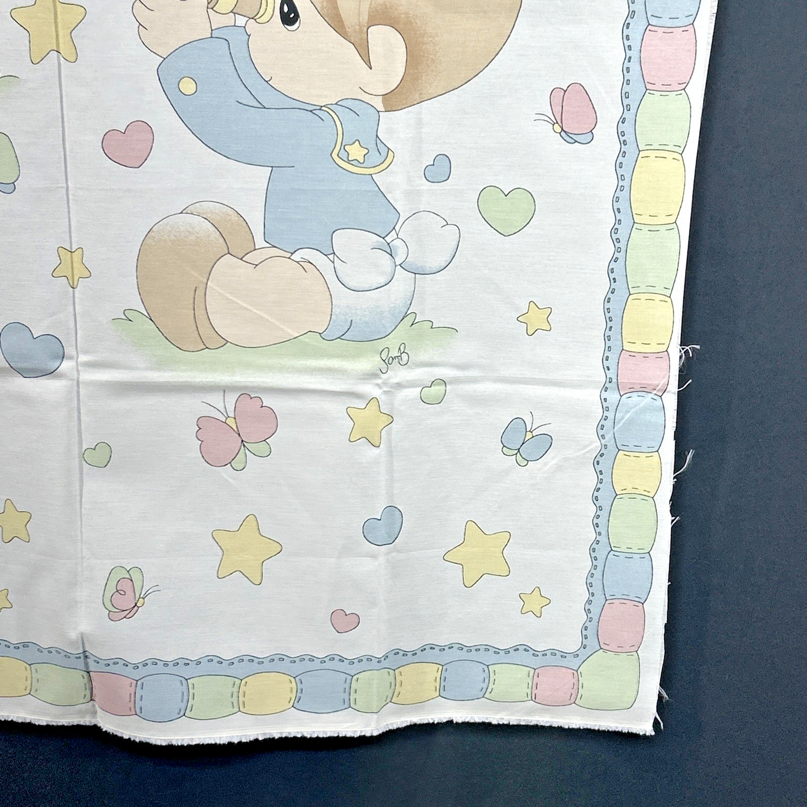 как выглядит Vtg 1998 Precious Moments Boy Girl Crib Blanket/Sheet Fabric Panel Hearts Stars фото