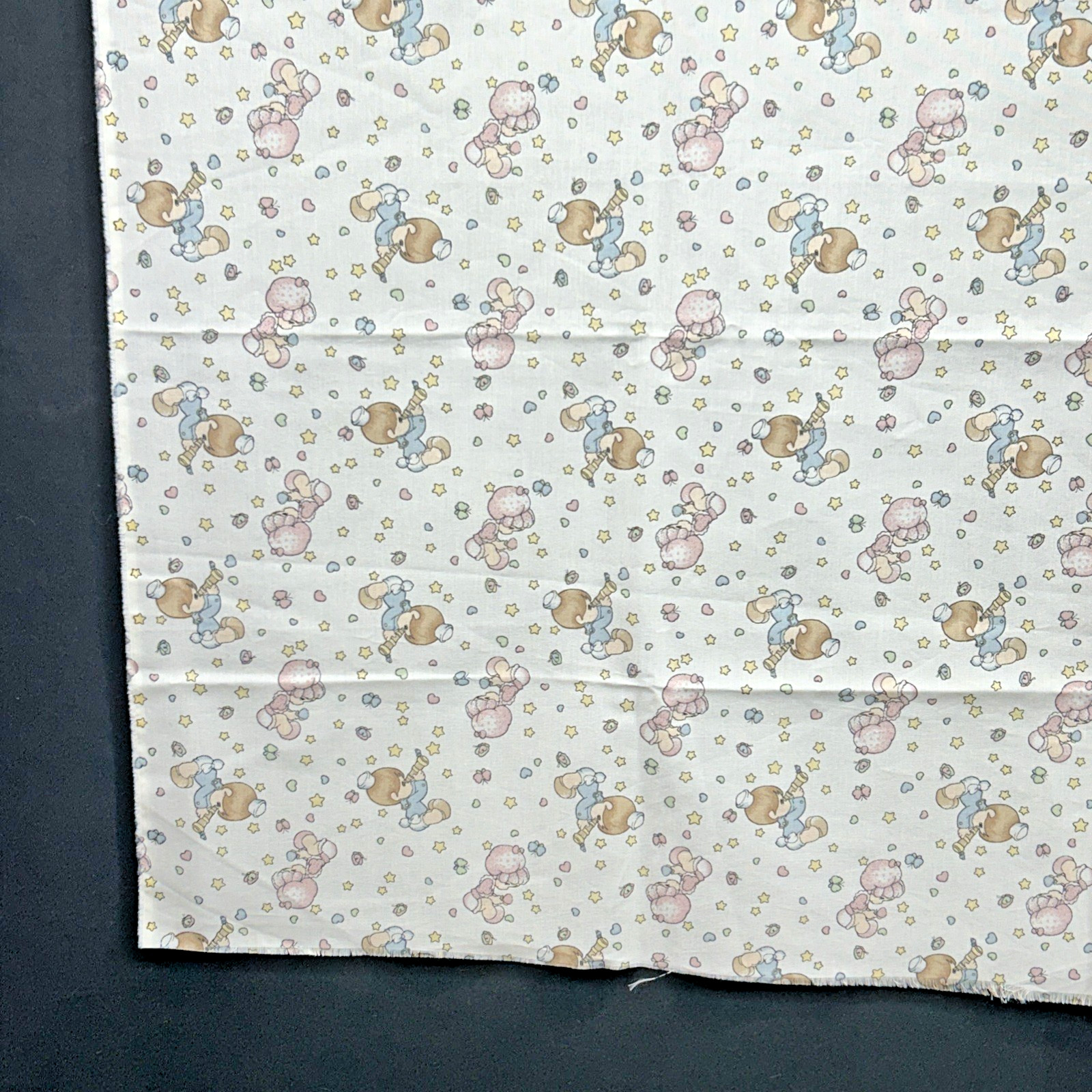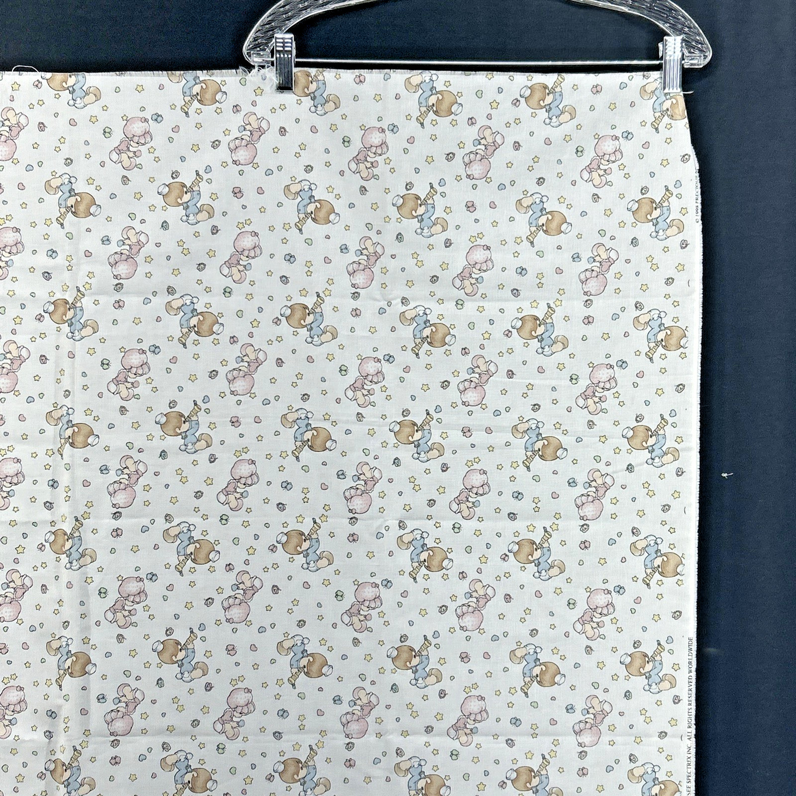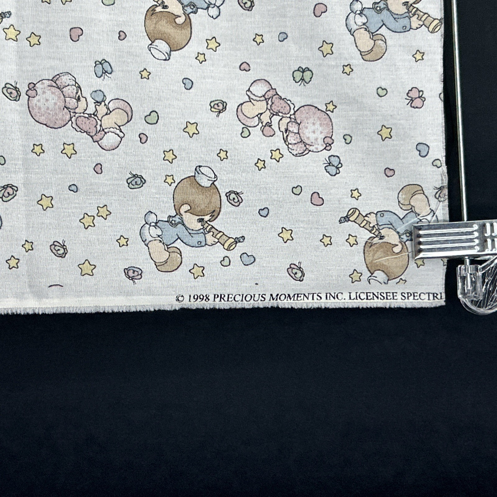 как выглядит Vtg 1998 Precious Moments Boy Girl Crib Blanket/Sheet Fabric Panel Hearts Stars фото