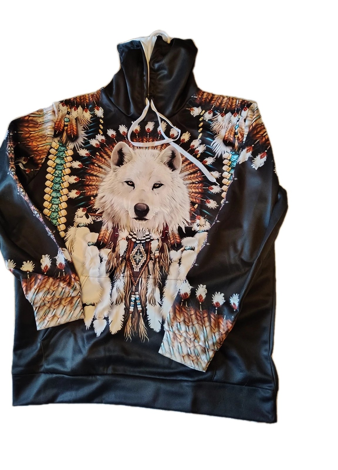 Native American Hoodie Pullover 3D Printed White Wolf Sweatshirts Jacket XL