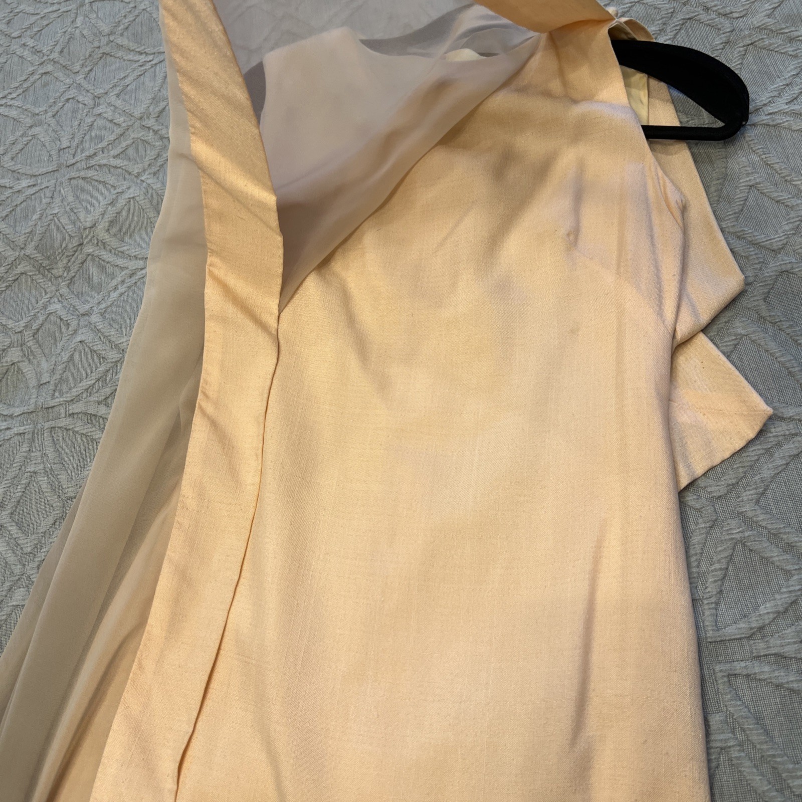 как выглядит Vintage 70s Travilla Cocktail Party Dress Peach Chiffon Overlay Designer Dress фото