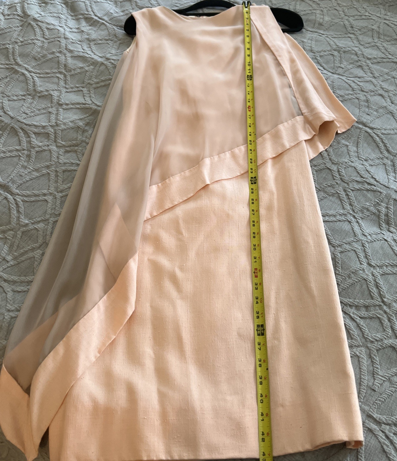Vintage 70's Travilla Cocktail Party Dress Peach Chiffon Overlay Designer Dress