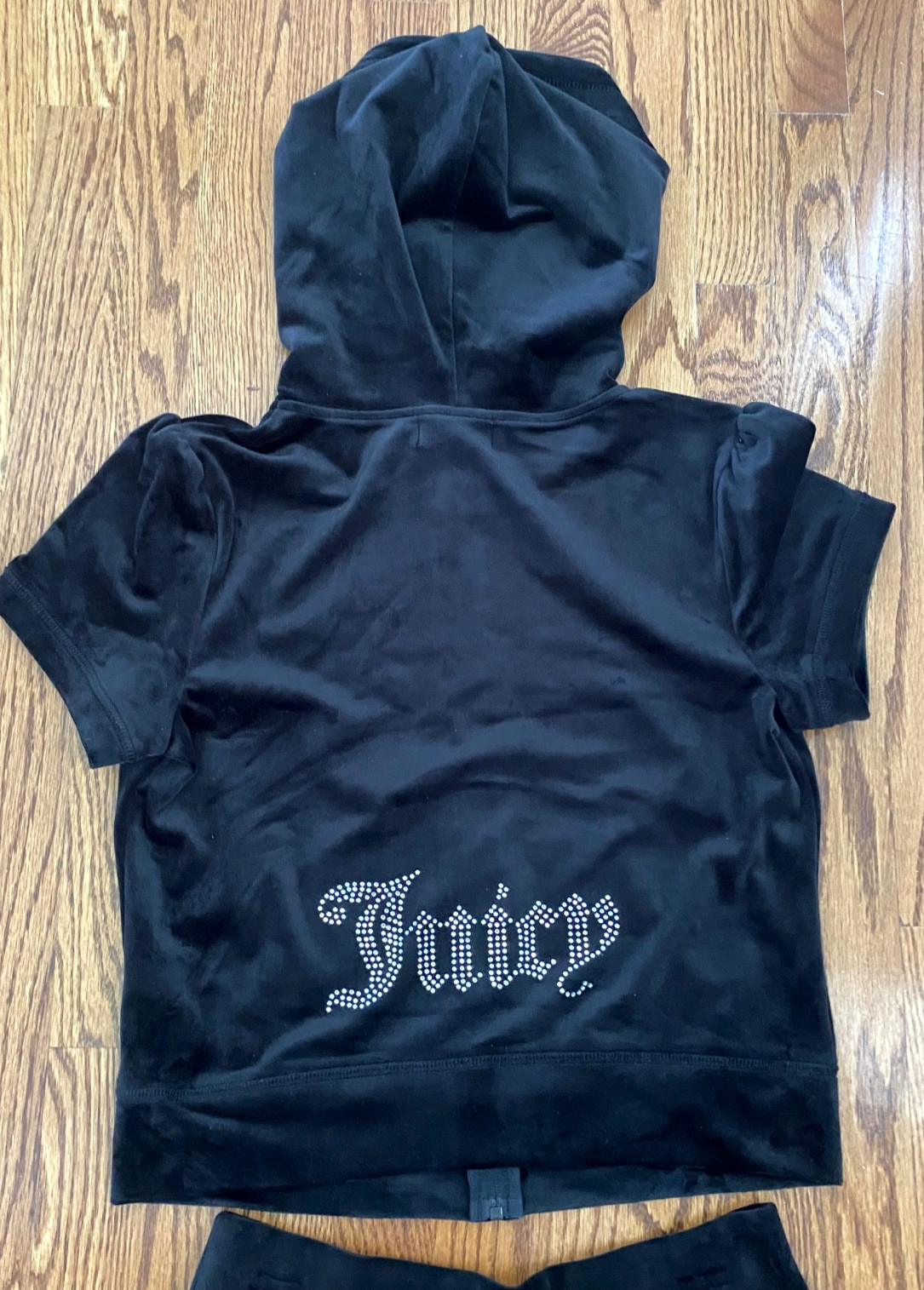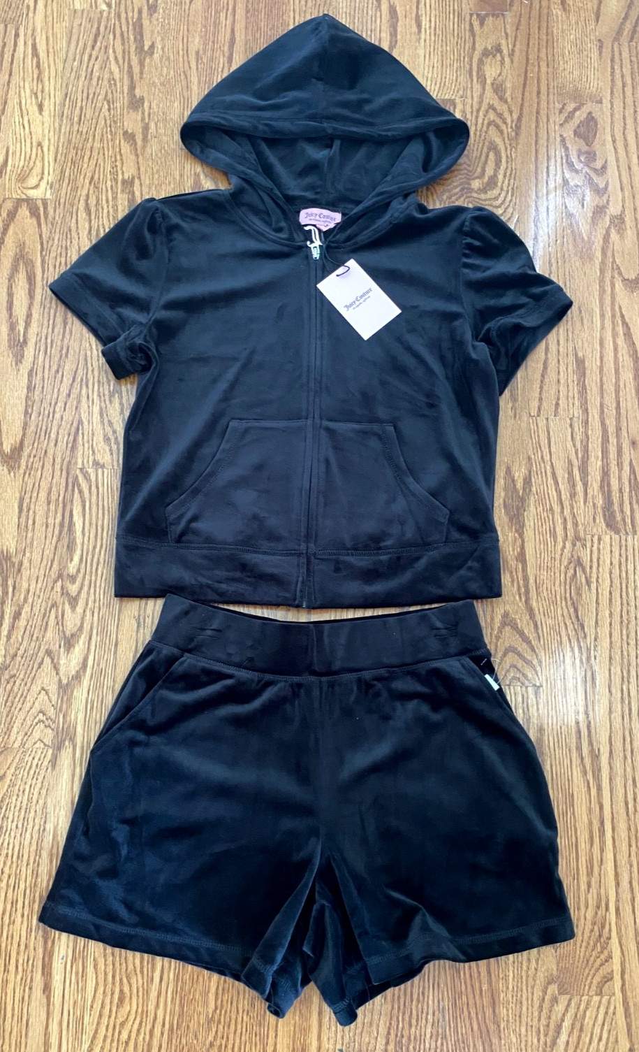 как выглядит Juicy Couture Black Bling Velour Full Zip Hoodie Shorts Tracksuit MEDIUM NWT фото