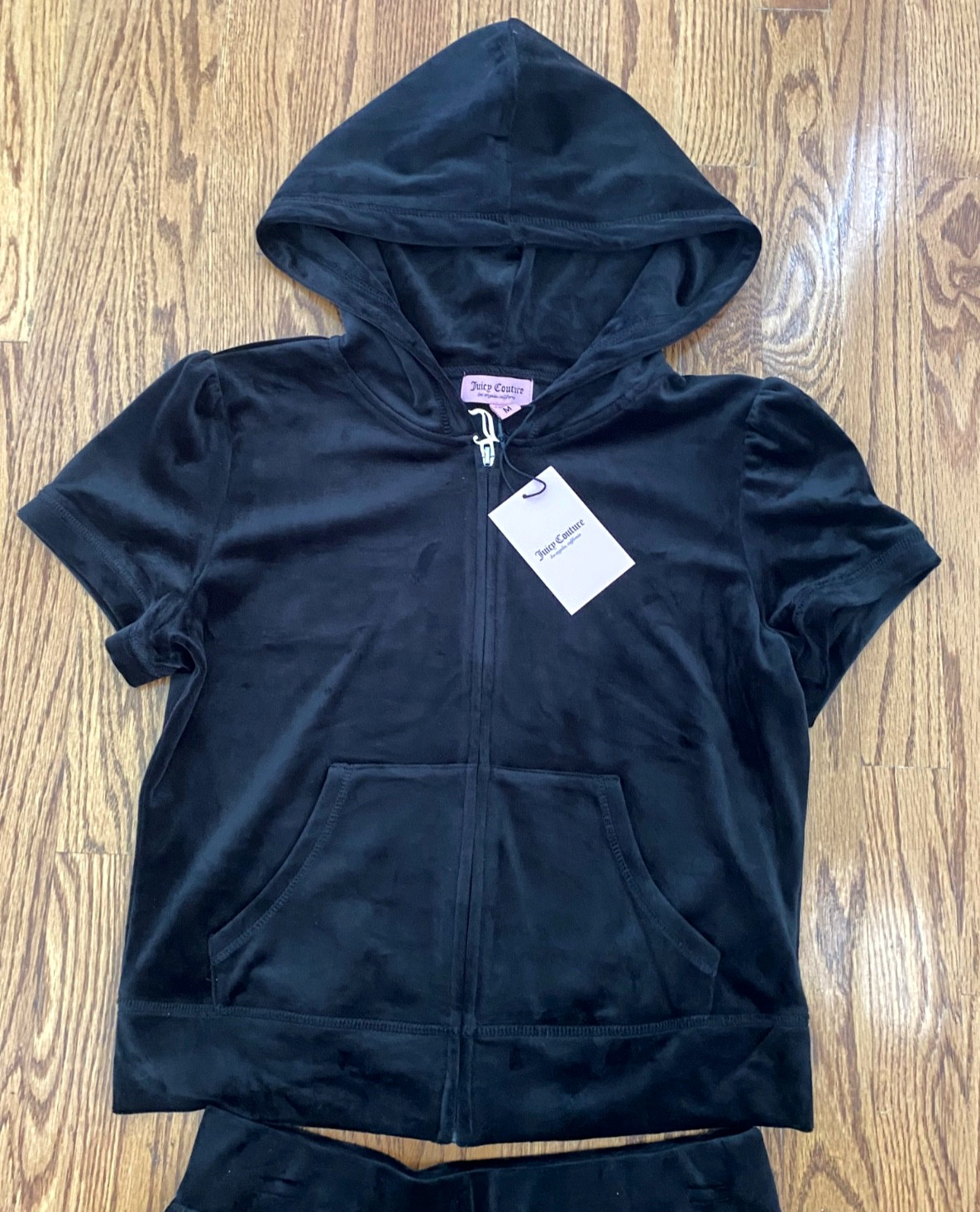 Juicy Couture Black Bling Velour Full Zip Hoodie Shorts Tracksuit MEDIUM NWT
