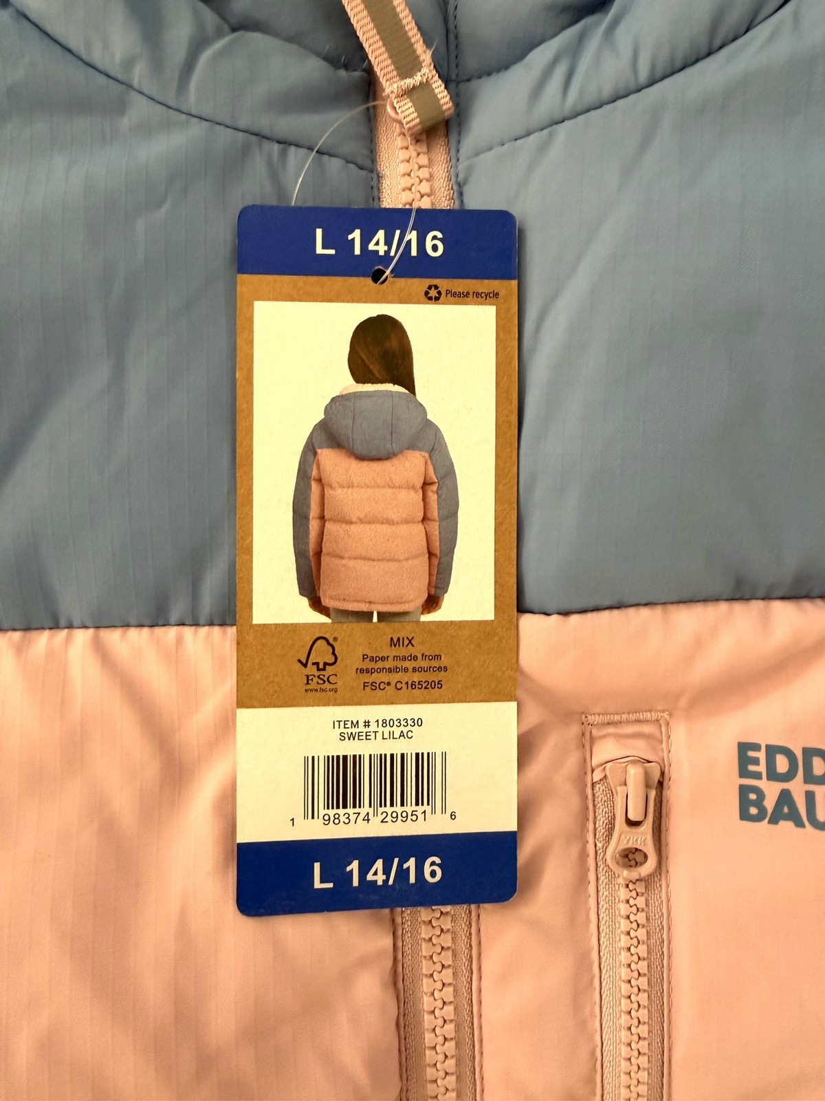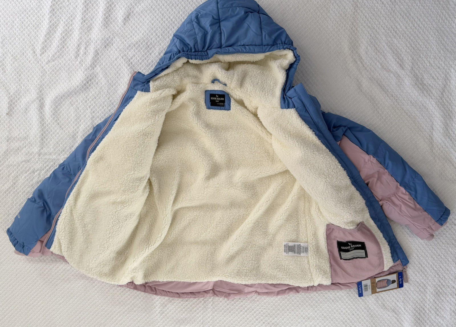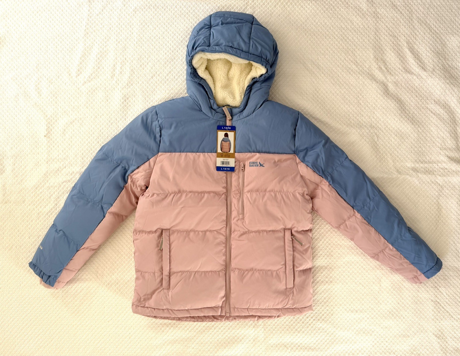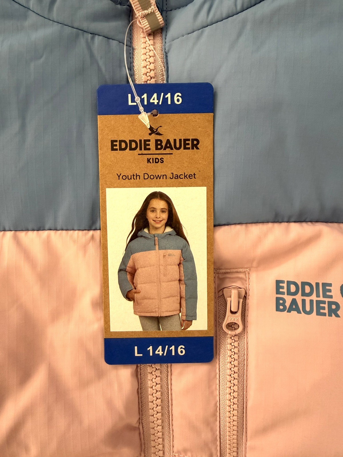 как выглядит Eddie Bauer Hooded Down Jacket Youth Kids 14/16 Warm Winter Girls Puff Pink blue фото