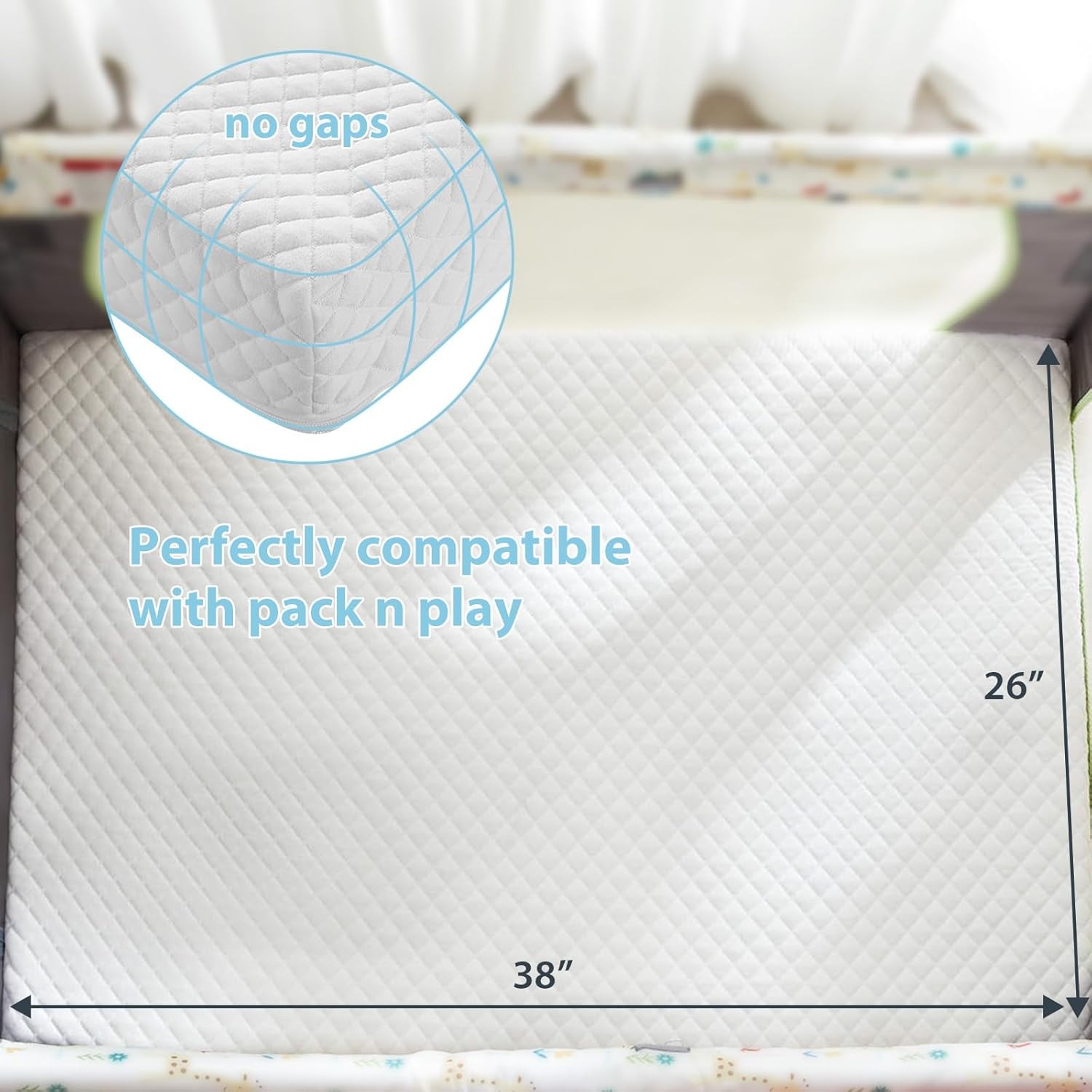 как выглядит 3" Waterproof Pack and Play Mattress with Breathable Removable Cover фото