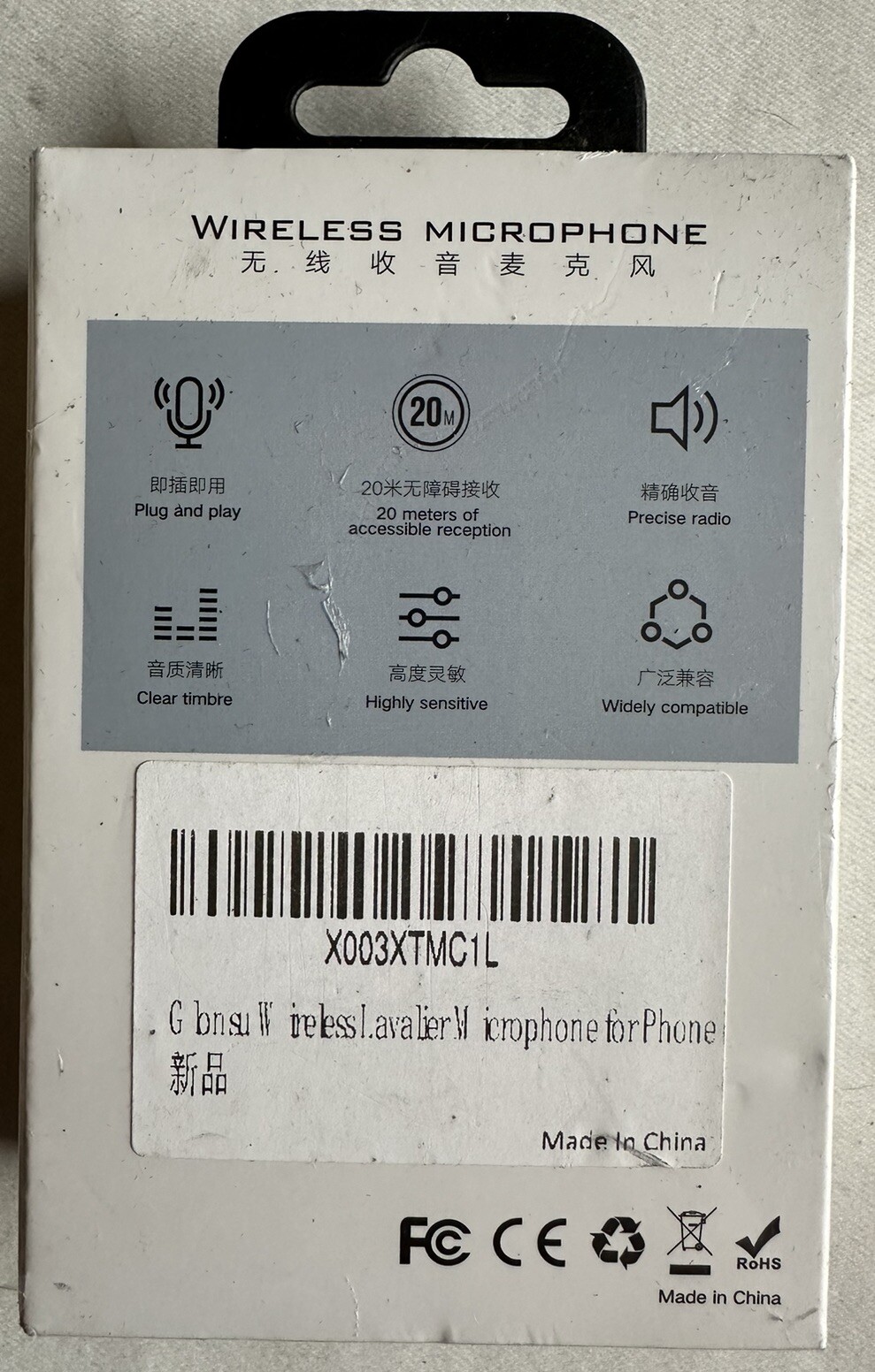 Wireless Microphone Lavalier Mic for iPhone, Android, Camera