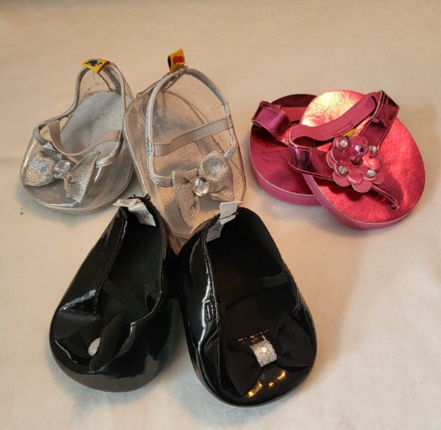 Build A Bear Workshop 3 Pairs Of Shoes Flip Flops, Silver Heels, Black Heels