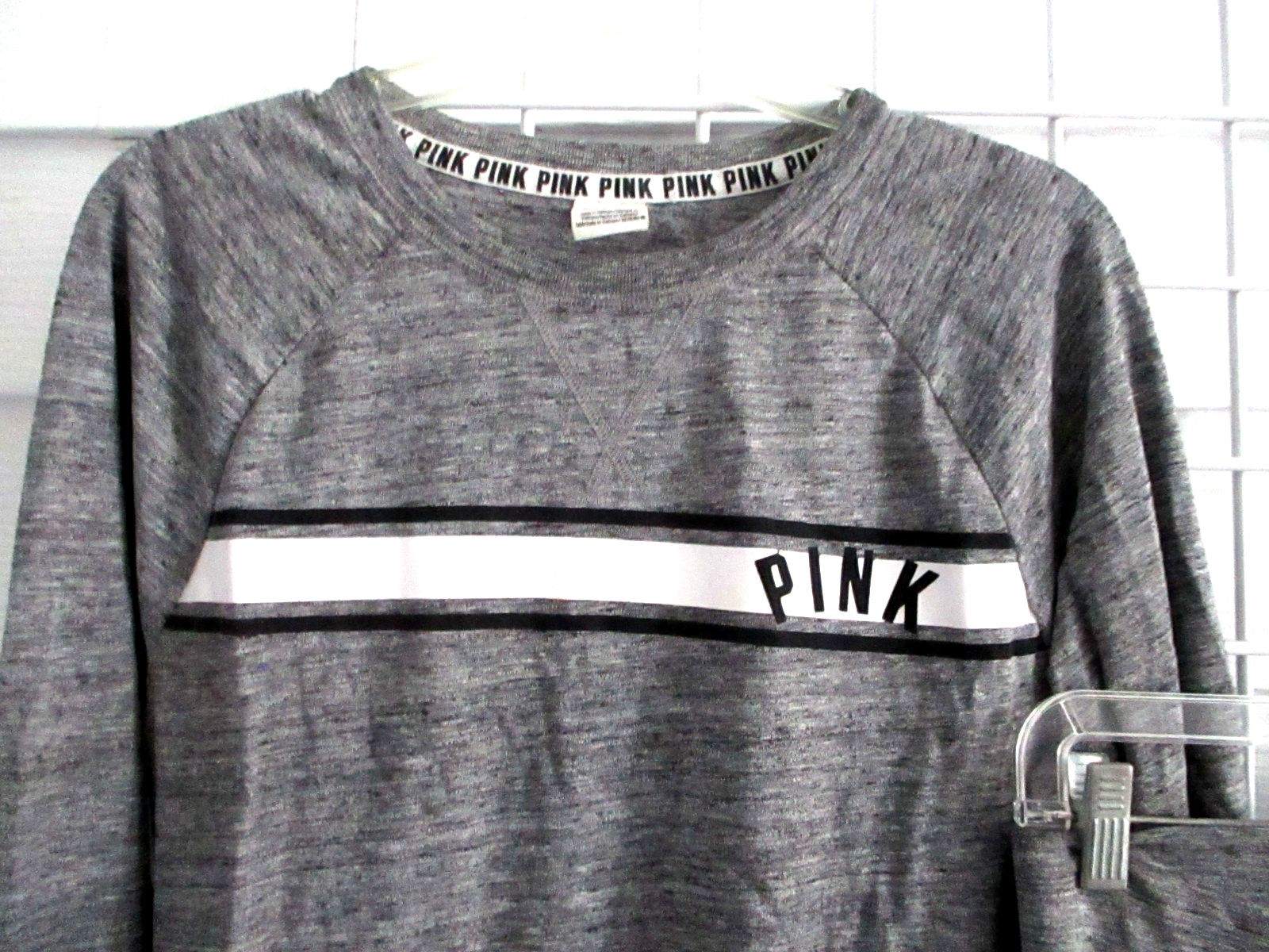 как выглядит Victorias Secret Pink Logo Gray Sweatshirt Tracksuit Jogger Set Sz S фото