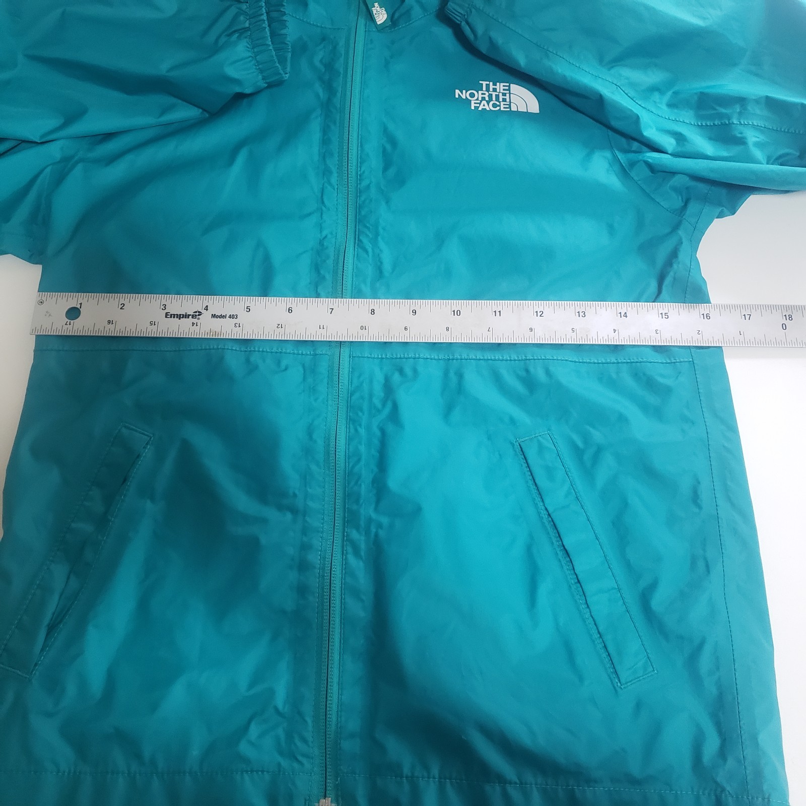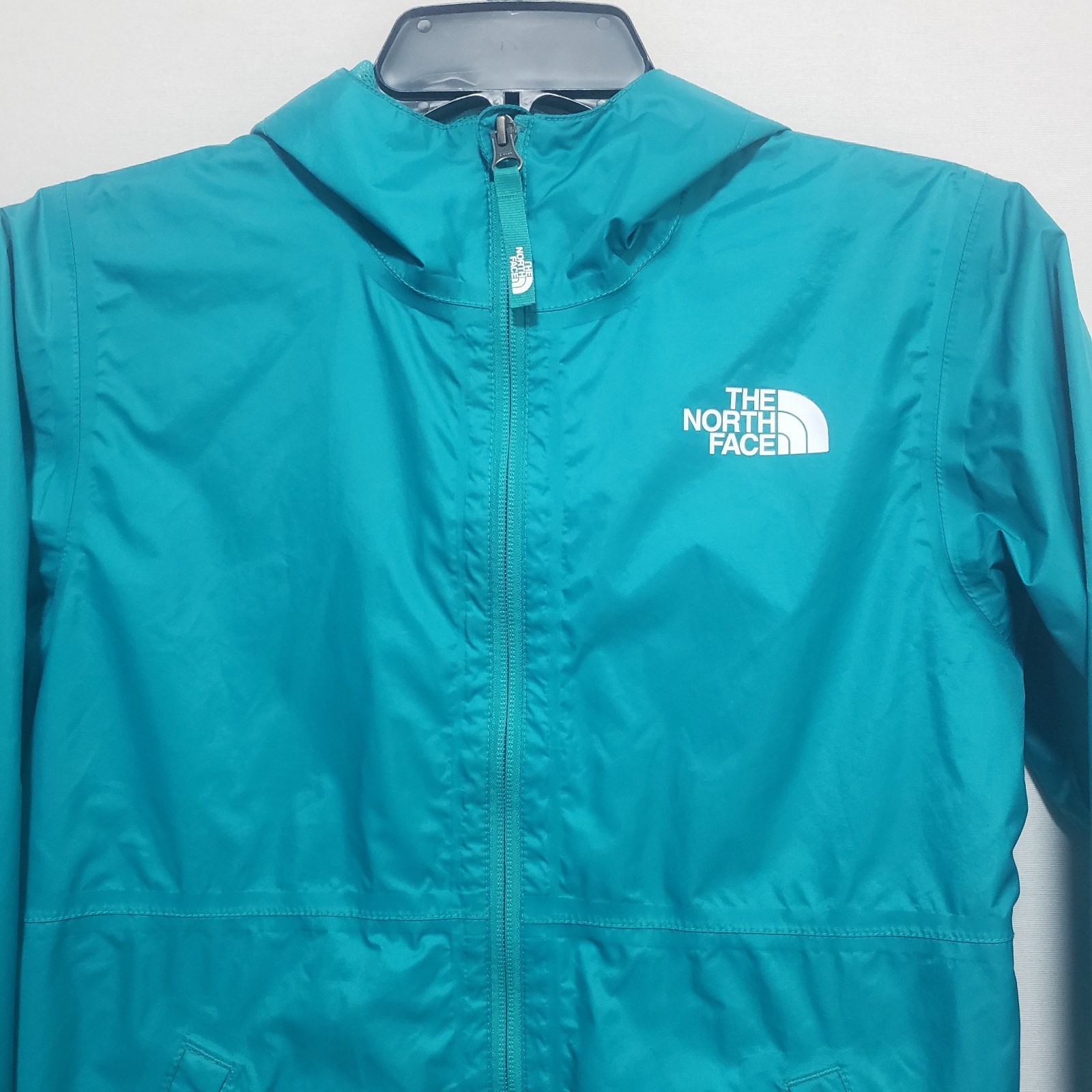 как выглядит The North Face Jacket Girls 10/12 Medium Teal Rain Hooded Youth Kids Lightweight фото
