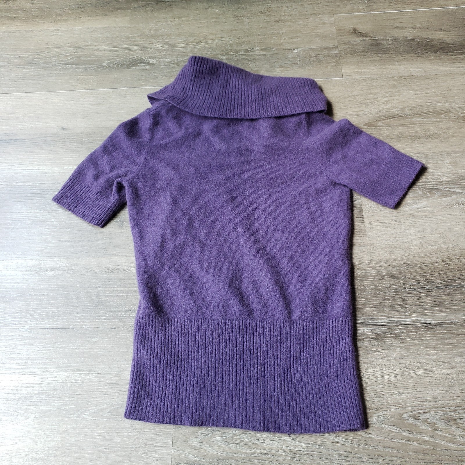 Apt 9 Purple All Cashmere Soft Pullover Sweater Sz M Big Collar Short Slv READ