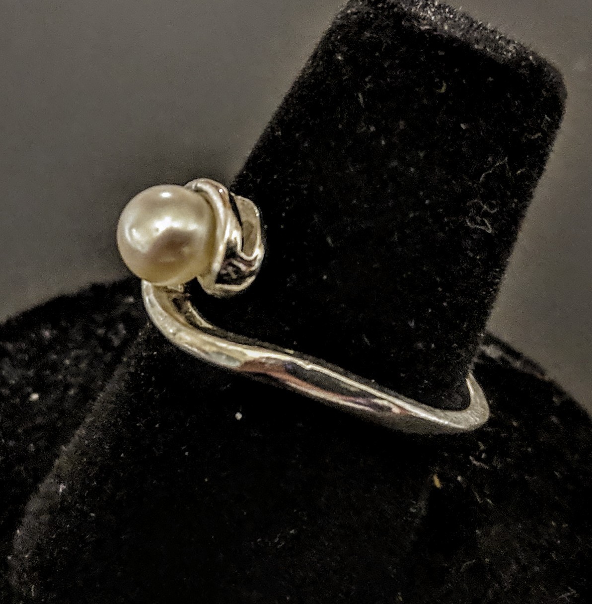 как выглядит elegant genuine natural pearl ring with 925 sterling silver band фото