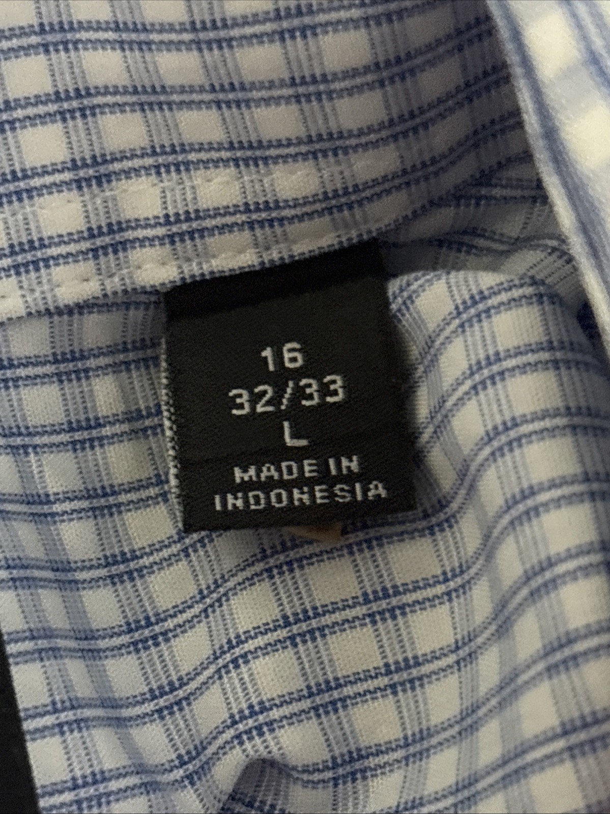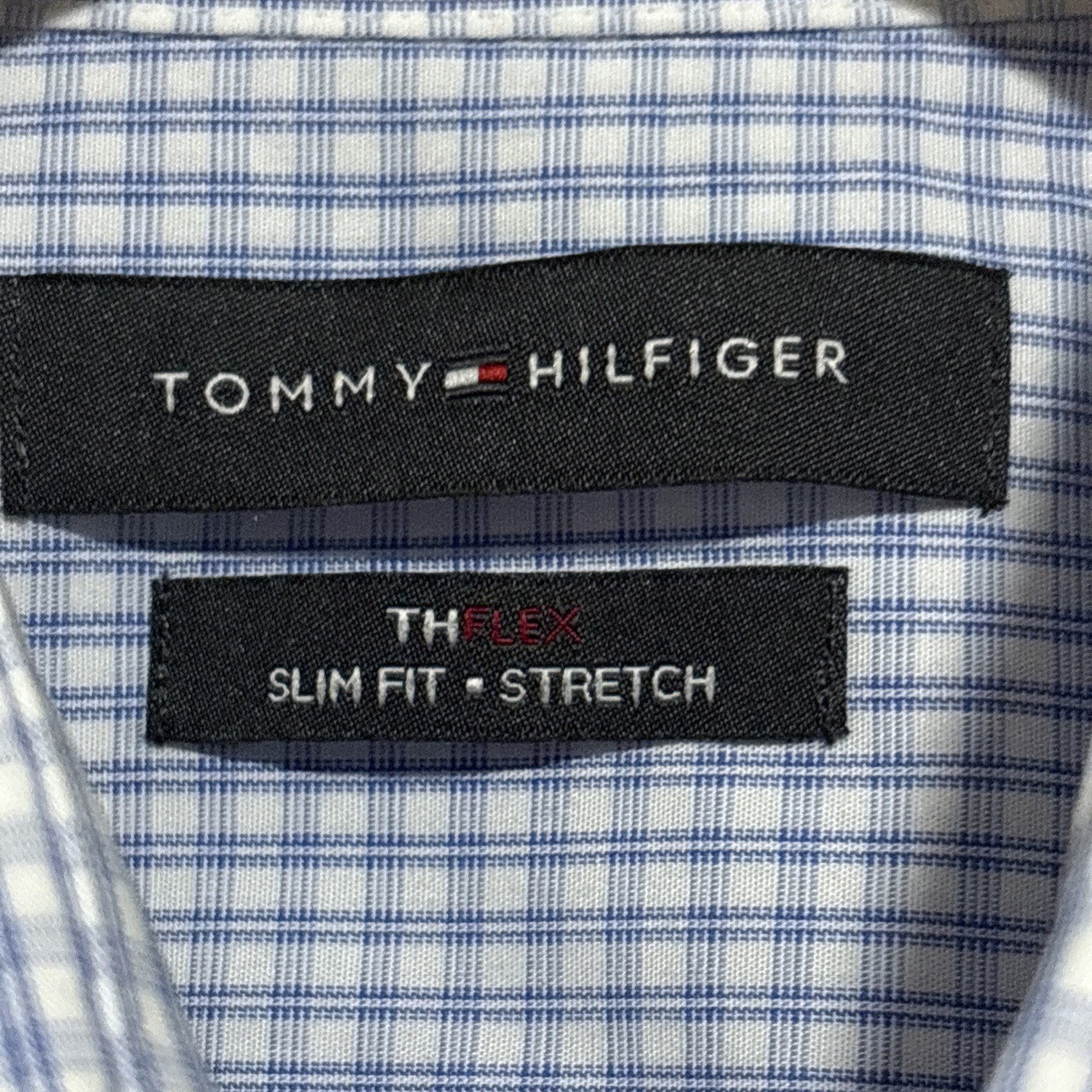 Tommy Hilfiger Shirt Mens 16 32/33 L Blue Gingham Slim Fit THFlex Stretch