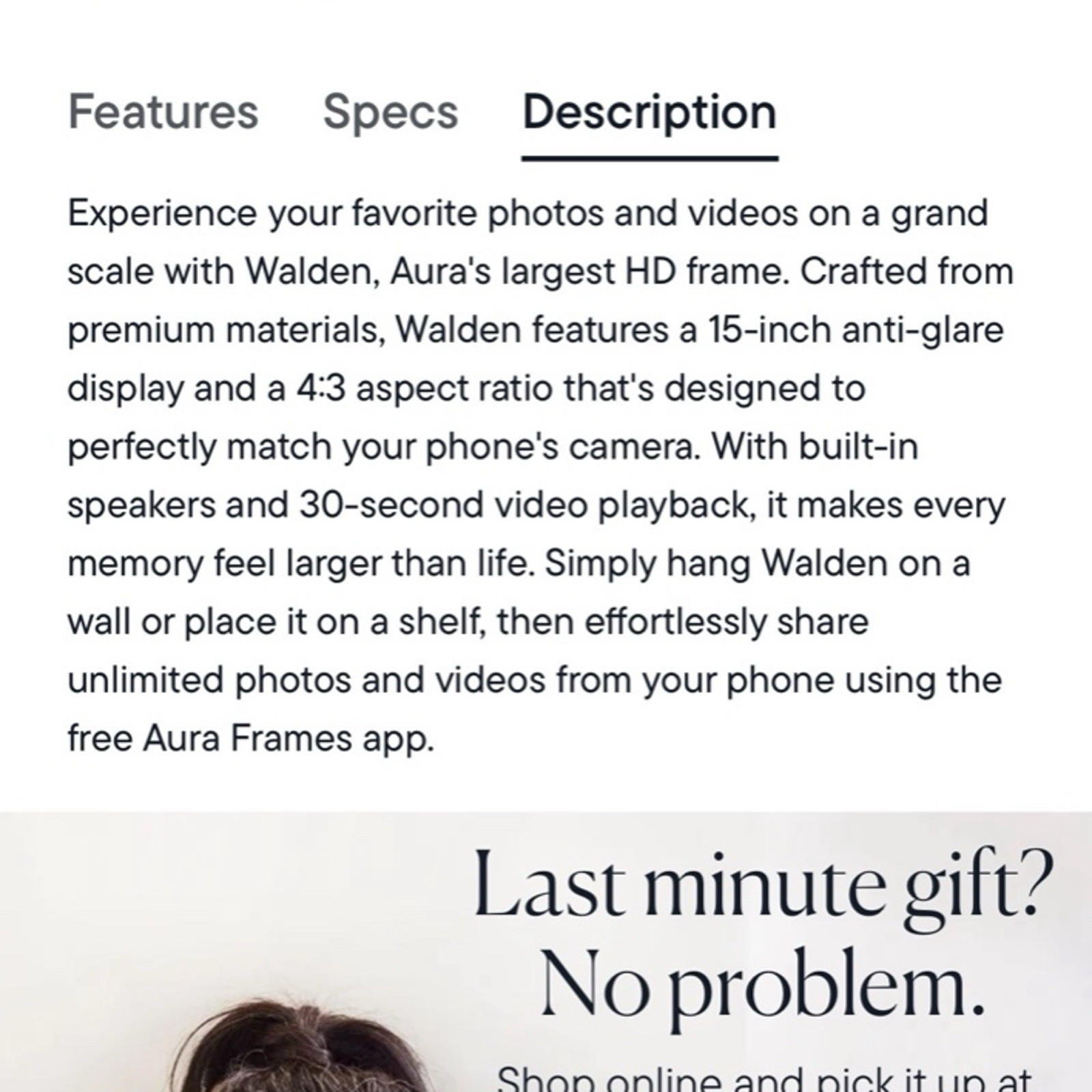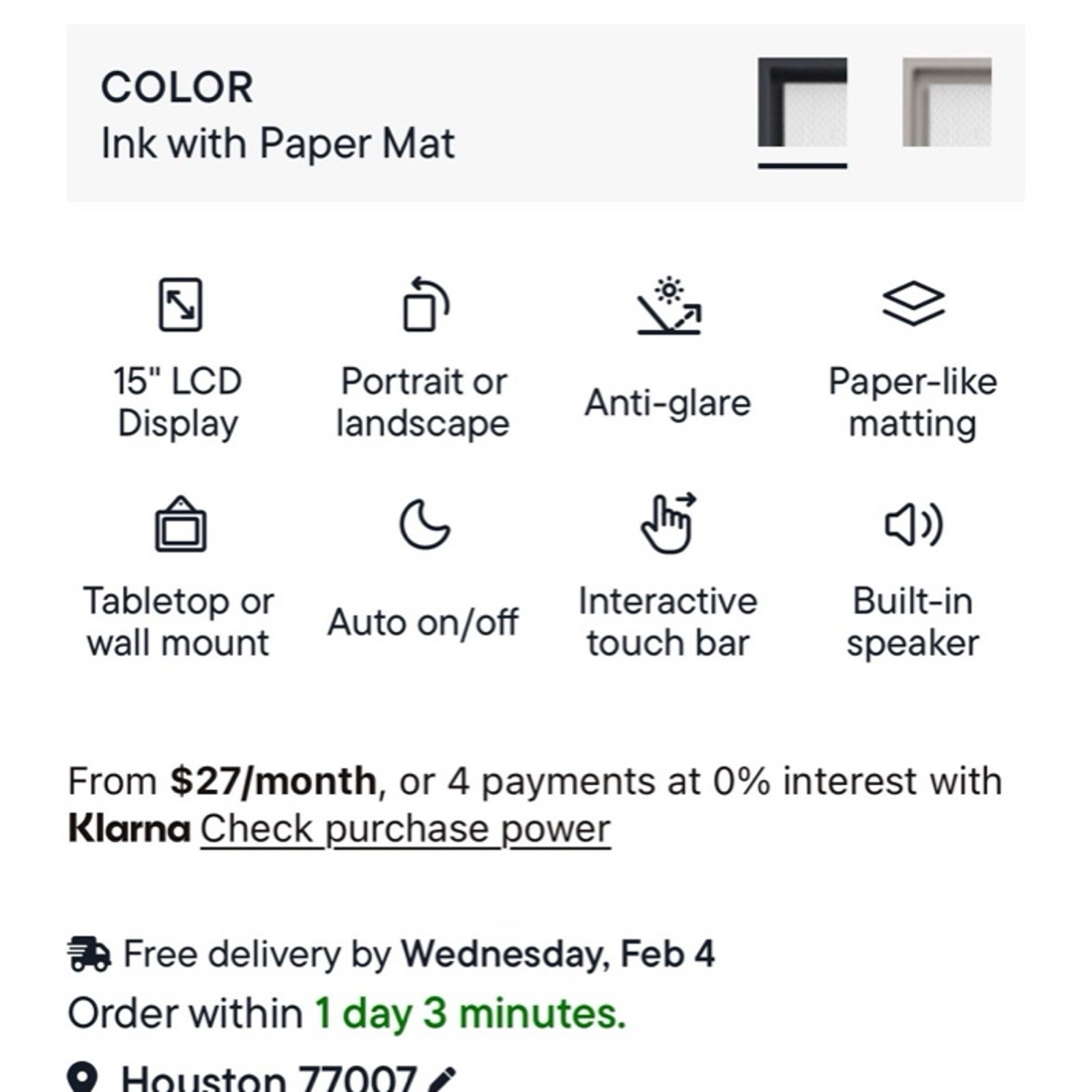 Aura Walden 15 LCD Digital Photo Frame, Wi-Fi, Anti-Glare, Ink with Paper Mat