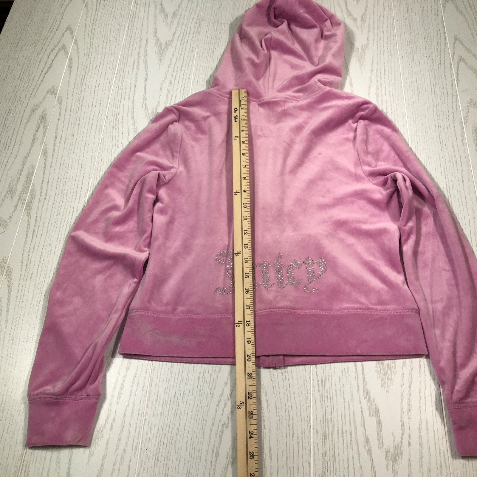 как выглядит Juicy Couture Hoodie Women M Pink Bling Velour Soft Full Zip Pockets Stretch New фото