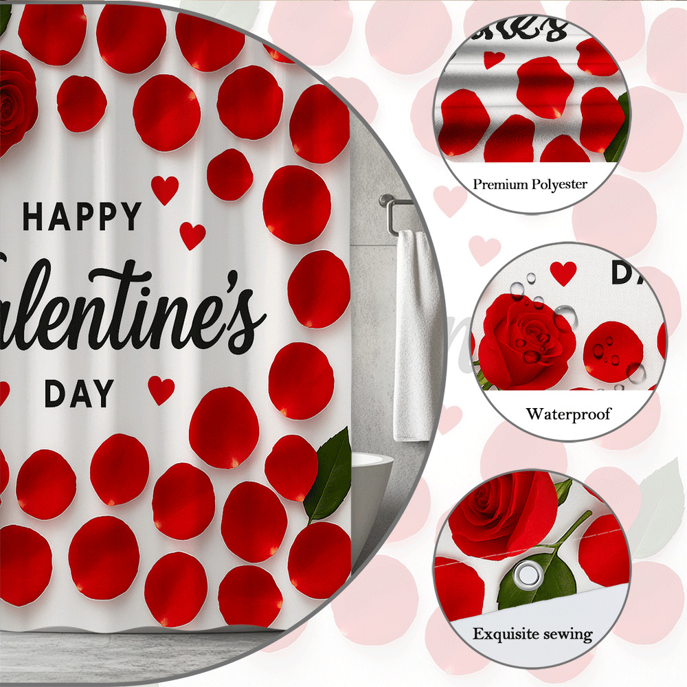 Elegant Valentine's Day Shower Curtain with Red Roses and Petals