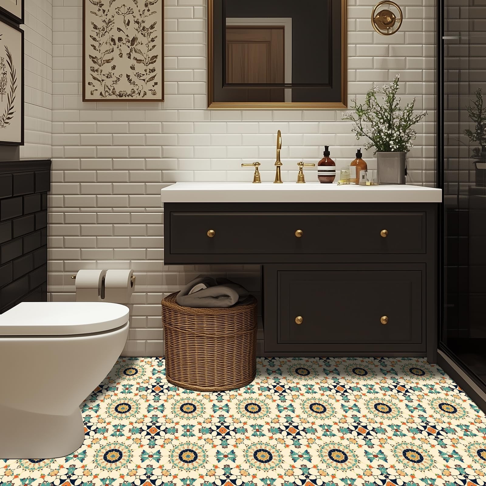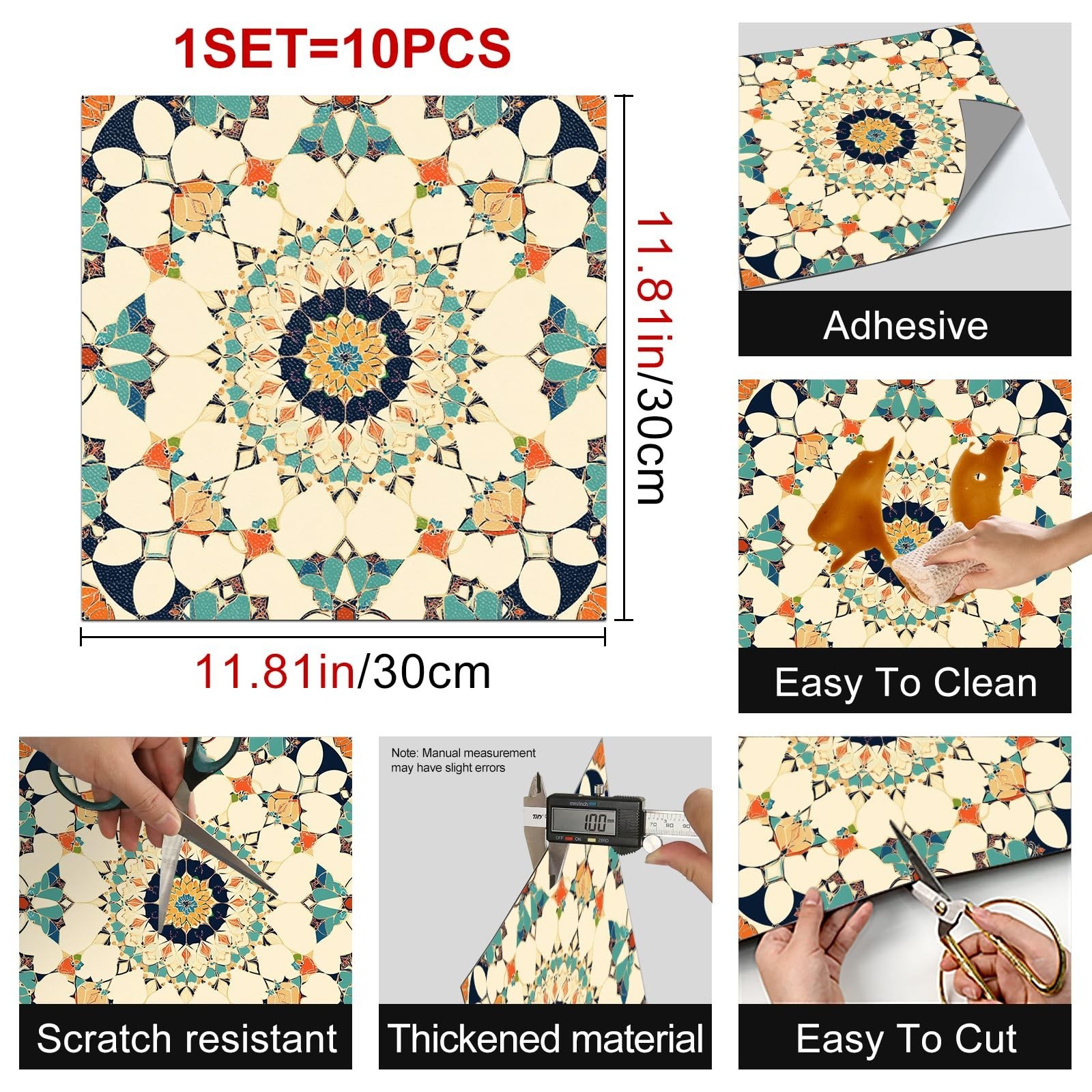 10PCS 12x12 Inch Moroccan Mosaic Peel and Stick Floor Tiles Removable Self Ad...